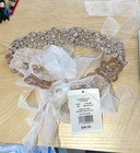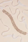 DAVID'S BRIDAL ADD TO WISHLIST High-Shine Crystal Flower Sash STYLE# DMJ4882X description Interconnected crystal flowers form an exquisite band of sparkle. Finished with a grosgrain ribbon. Metal, crystal 68"L, 2"W ribbon; 17"L, 1"W embellishment Imported