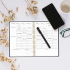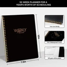 This Weekly Planner - the ultimate tool to help you stay organized and focused throughout the year. Whether you're a student, teacher, or professional, this planner has got you covered.With its weekly and hourly planner format, you can easily map out your schedule, appointments, and important deadlines. The monthly planner section provides an at-a-glance overview of your entire month, allowing you to plan ahead and stay on top of your goals.This planner also features a habit tracker, allowing you to monitor your progress and establish new routines. The notes section provides ample space for jotting down ideas, to-do lists, and important reminders.Crafted with high-quality materials, this planner is built to last. The sleek design and professional layout make it a great addition to any office desk or workspace.Whether you're looking to manage your finances, track your meals, or simply stay organized, our Weekly Planner is the perfect companion. Undated weekly planner:dateless planning for ultimate flexibility. start your weekly plans, goals, and to-do lists anytime without wasting paper. 1-Hour Planning Interval :dateless planning for ultimate flexibility. start your weekly plans, goals, and to-do lists anytime without wasting paper. 52-Week Planner: Dateless planning for ultimate flexibility. start your weekly plans, goals, and to-do lists anytime without wasting paper. Premium Paper Quality:Premium Paper Ensures Ink Resistance and Minimizes Feathering, Ideal for Double-Sided Writing. Gold Spiral Binding: sturdy, flexible, and convenient for easy page turning. can lay flat on desktops.