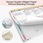 Menu Other Items Feedbacks About Us Contact Us Add To Favorites Weekly to Do List Notepad with 52 Undated Sheets(8.5"×11")- Weekly Desk Planner for Women & Man, Work and Home - Whispering Petal Unleash Your Productivity Potential - Our weekly to do list notepad provides a complete system for managing your tasks. It includes a checklist, a top priority section, a low priority section, and a follow-up section, allowing you to categorize and prioritize your tasks effectively. Undated Weekly Planner - Embrace the freedom of an Undated Weekly Planner with 52 weeks of undated planning pages. No more wasted spaces or skipped dates – start your planning journey exactly where you left off, any time you want. This versatile planner allows you to stay organized in 2024, 2025, or even as far ahead as 2026! Functional Design - Our notepad features premium quality covers and twin-wire binding, providing durability and flexibility for smooth page-turning. The sturdy cardboard backing ensures stability on any surface, making it a reliable companion for your daily tasks. High-Quality Design - Our weekly desk planner is crafted with attention to detail, using premium quality 60-pound smooth white paper and a sturdy chipboard backing. Measuring at a convenient size of 11 X 8.5 inches (A4), it offers ample space for writing and planning your tasks. The clean and elegant design adds a touch of sophistication to your workspace. Versatile and Long-Lasting - Our desk planner is suitable for various uses, including office, home, school, or personal organization. It is made with high-quality paper to ensure durability throughout the year, making it a reliable companion for all your planning needs. Product Description TRANSPARENT COVER Long-lasting PVC cover with waterproof protection safeguards your sheets effectively. TOP TWIN-WIRE BINDING Effortlessly flip pages with the double spiral binding design. PREMIUM PAPER Inner pages feature high-quality acid-free 100gsm paper. The paper resists ink bleeding for a great writing experience. STURDY CARDBOARD Protect the back page from getting scratched and easy to write anywhere. Taja 2025 Planner & Christmas Cards Add to Cart Add to Cart Add to Cart Add to Cart Add to Cart Add to Cart Add to Cart Customer Reviews 4.8 out of 5 stars 37 4.7 out of 5 stars 210 4.7 out of 5 stars 21 4.8 out of 5 stars 16 4.8 out of 5 stars 16 4.8 out of 5 stars 16 4.8 out of 5 stars 16 Price $6.99 $ 6 . 99 $5.99 $ 5 . 99 $5.99 $ 5 . 99 $5.99 $ 5 . 99 $5.99 $ 5 . 99 $5.99 $ 5 . 99 $5.99 $ 5 . 99 Size 6.3" x 8.5" 5.5" x 6.7" 5.5" x 8.5" 4*6 4*6 4*6 4*6 Quantity 140 Pages / 70 Sheets 136 Pages / 68 Sheets 120 Pages / 60 Sheets 6 Designs / 24 Pack 6 Designs / 24 Pack 6 Designs / 24 Pack 6 Designs / 24 Pack Paper Weight 100 gsm 100 gsm 100 gsm 300 gsm 300 gsm 300 gsm 300 gsm Year Jan 2025-Dec 2025 None None None None None None Format Weekly & Monthly Password Book Sketch Book Christmas Cards Set Christmas Cards Set Christmas Cards Set Christmas Cards Set Item Specification Sheet Size A4 Calendar Type Weekly Format Organizer Color c. Whispering Petal Material Paper Material Type Paper Manufacturer Part Number T016-Whispering Petal Pages 52 Pages Item Weight 14.72 ounces Product Dimensions 11 x 8.5 x 0.5 inches Ruling Ruled Target Audience Adult Cover Material Polypropylene Size 8.5 inches X 11 inches SHIPPING FREE FAST SHIPPING FREE SHIPPING We are always working hard to ensure your package arrives as soon as possible. Please understand that some factors like weather, high postal traffic, and the performance of shipping companies are outside of our control. We offer free shipping to the lower 48 states. We do not accept P.O. Boxes. Please provide a physical address. If you have a problem or question regarding your transaction please contact us immediately. We will work with you to resolve any problem you may have. Thank you