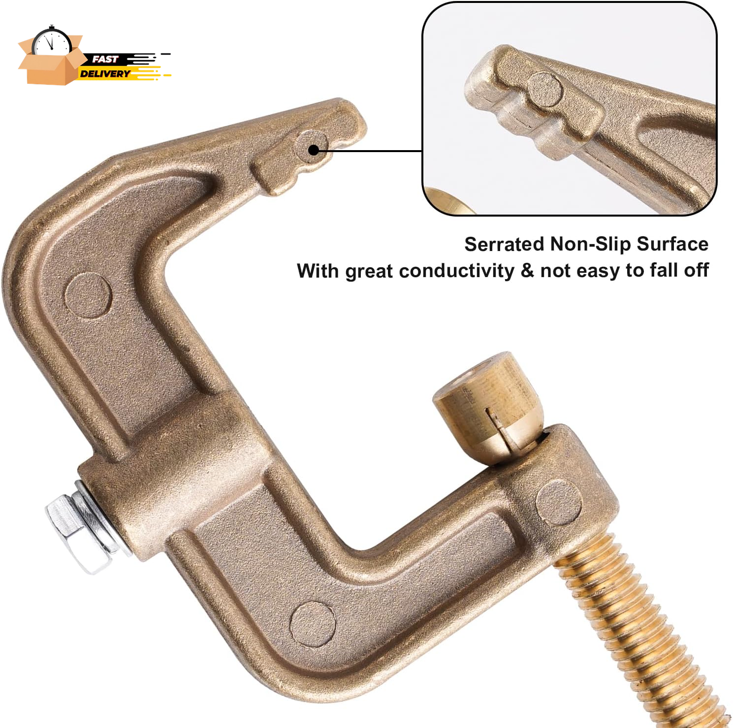 Store New Arrivals Add to Favorite View Feedback Contact Welding Ground Clamp 500Amp G-Style Solid Brass Clamping Range up to 44Mm Earth Description Style Modern Color Golden Material Brass Batteries Required? No Item Weight 1.1 pounds Size 500 Amp Package Dimensions 5.08 x 3.9 x 0.87 inches Specification: 500Amp current carrying capacity. The maximum clamping distance is 44mm/1.73inches. Design: The earth clamp adopts the design of G type with great clamping. Standard thread and serrated non-slip surface, strong stability and not easy to fall off, meeting your daily work needs. Brass Material: Welding Knight welding ground clamp is made of premium Brass material with great conductivity, and oxidation resistance for long service life. Easy to operate: There is a force lever on the top of the screw, you can easily rotate the screw, which can be adjusted to different thicknesses and clamped on any flat surface you want, simply and conveniently. Applications: Suitable for Tig welding, Mig welding, MMA welding, submerged Arc welding, gas metal Arc welding, gas tungsten Arc welding, etc. Product description Welding Knight Brass Welding Ground Clamp Why Choosing Us: Do you want to get more durable and safe welding ground clamps? Welding Knight Ground Earth Clamp is made of premium Brass material with great conductivity, and oxidation resistance for long service life. A large contact surface area can give good cable connections and positive grounding. Inspected and tested by professional engineers before leaving the factory. Detailed Specification Material: Brass Current: 500A Clamping thickness: 44mm/1.73inches Package included: 1 x G-Style Ground Earth Clamp The earth clamp adopts the design of G type with great clamping. Standard thread and serrated non-slip surface, strong stability and not easy to fall off. There is a force lever on the top of the screw, you can easily rotate the screw, which can be adjusted to different thicknesses and clamped on any flat surface you want, simply and conveniently. Suitable for Tig welding, Mig welding, MMA welding, submerged Arc welding, gas metal Arc welding, gas tungsten Arc welding, etc. ABOUT US We offer the best prices around on high quality products. Our E-store includes media such as books, movies, music and games while offering electronics, toys, sporting apparel, clothing, tools, general home, garden items and more. SHIPPING We are always working hard to ensure your package arrives as soon as possible. Please understand that some factors like weather, high postal traffic, and the performance of shipping companies are outside of our control. We offer free shipping to the lower 48 states and ship within 2 business days of payment, usually sooner. We do not accept P.O. Boxes. Please provide a physical address. For shipping outside of the continental USA, we only use eBay's Global Shipping Program.The item is shipped to KY and then sent to the rest of the world. International customers are responsible for all duties and taxes. Continue to check out in order to calculate costs for shipping the item to your country. Messages regarding eBay's Global Shipping Program MUST be directed at eBay EXCLUSIVELY. RETURNS We offer a 30-Day Return Policy on items which you are not completely satisfied with. You have the option for a full-refund or an exchange of the item. No returns are available on items shipped outside of the USA. PAYMENT We accept PayPal. CONTACT US This page content is yet to come Please ad us to your favorite seller and visit again later Thank You CUSTOMER SATISFACTION We try our very best to make sure every customer is completely satisfied. If there's a problem, message us! We're happy to help. WE ACCEPT Copyright © 2021 AutoDS. | All Rights Reserved