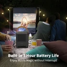 【3 Hours Battery Video Time, Portable Outdoor Theater】 With the built-in 16000 mAh battery, you can use the projector continuously for up to 3 hours; WEMAX Dice is a truly portable outdoor movie projector that can run on battery power for the duration of 1 or 2 movies; ideal for evening outdoor screenings 【700 ANSI Lumens 4K Support, Remarkable Clarity】 WEMAX Dice Movie Projector delivers 1920x1080p high-resolution display, and supports 4K movie playback. 4-channel LED RGB+BP technology, 20% brighter than traditional 3-channel LED projectors. High-end DLP imaging technology with 700 ANSI lumens of brightness for stunning Full HD visual entertainment 【Auto Keystone Correction, Angles Never Bother You】 Just put WEMAX Dice at any angle, the projector's auto keystone correction function can give you the best viewing experience. The 4-point keystone correction function can adjust the projected image within ±45° vertically and horizontally. Auto focus feature provides instant clarity for movies or other content you love without having to struggle with manual settings 【Dual 5W Dolby Audio DTS-HD Theater-Like Speakers】 Hear your movie come to life. The 2 built-in speakers support Dolby and DTS for a cinematic sound experience; you can even use the WEMAX Dice portable projector as a standalone speaker thanks to the built-in Bluetooth feature 【Built-in Certified Android TV, Endless Entertainment】 You can easily download apps from Google Play, such as YouTube, Prime Video, Hulu, Disney+, HBO Max, and more. You can also use Google Assistant by pressing the button on the remote to give commands. In addition, you can mirror your phone's screen to the projector wirelessly. Note: Netflix is subject to copyright restrictions. If you want to stream Netflix, we recommend connecting a FireTV Stick or Roku Stick to access the content you want.