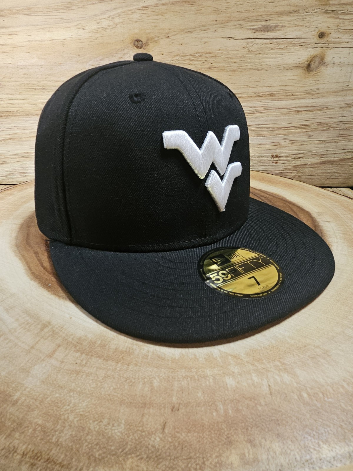 Elevate your headwear collection with the West Virginia Mountaineers New Era 59Fifty Fitted Hat. This sleek black baseball cap is a versatile accessory that complements any outfit, whether you're cheering on your team at a football game or simply out and about. The cap features a solid pattern and is designed with a college sports theme, perfect for NCAA football fans and alumni. Crafted for comfort and style, this cap comes in a size 7 and is fitted to ensure a snug and secure fit. New Era is renowned for its quality and this cap is no exception, suited for various occasions from business to casual wear and even sporting events. The cap is an ideal pick for those who appreciate a blend of streetwear and college sports spirit.