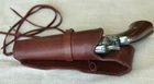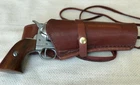 Western Express - Cowboy Leather Gun Holster - Right - Wine Smooth 45 cal 70104 Large Holster Made in Mexico Genuine Quality Leather Hand dyed and dutifully crafted with pride using premium tanned smooth leather Design ed for large revolvers and a safe bet for any gun ten (10) inches or more in length Dimensions Overall length from end to end is eleven (11) inches Width at widest point is four (4) inches Circumference at widest point is eleven (11) inches Opening for belt is generally three (3) inches but there is margin for smaller or larger belts. Holster easily slides right onto the belt of your choice. Made of Genuine Leather with Leather Leg Strap and Leather Hammer Strap – this holster is not ma de out of fake man made materials. It is the real deal! Hecho en Mexico Holster Heavy Leather. Made of sturdy heavy-duty cowhide . Gun shown is for illustrative purposes and is not included in sale