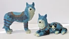 Westland Gifts Set of 2 CALL OF THE WOLF Native Painted Wildlife Figurines 2007 This is an AMAZING pair of Westland Gifts blue native-painted wolf figurines from 2007. They are part of the "Call of the Wolf" collection that came in assorted colors, styles and patterns. These 2 are male and female, one standing and one laying down. They are both blue in color and painted with Native American and Southwestern designs. They are made of very hard resin. The female (laying down) is 6.25 inches long, 3.25 inches wide, and 3.5 inches tall. The male (standing) is 6.25 inches long, 2.75 inches wide, and 5.5 inches tall. They are both in EXCELLENT CONDITION! There are no chips, cracks, scratches, repairs, discoloration or marks. They are LIKE NEW and AMAZING! Check out my eBay store for more great items: https://www.ebay.com/str/mvsellsstuff Shipping with USPS Ground Advantage Mail. Or available for pick up in Queens, NY.