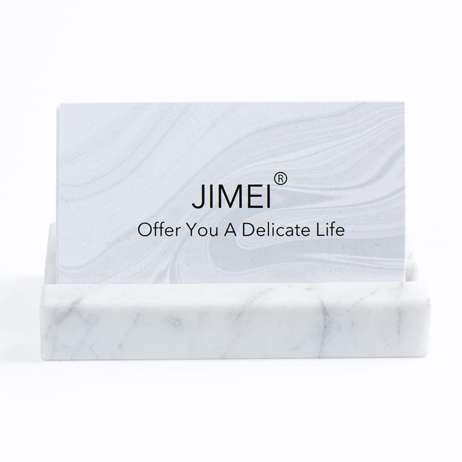 Business Card Holder for Desk - Business Card Display Holder - Made of White Carrara Marble - Desk Organizer Stand for 25 Business Cards - Cute Office Desktop Accessory for Men and Women ✓ Free 60 Day Returns ✓ Free Express Shipping Description: Features: levate Your Brand Image -- Make a statement on your desk with a deluxe business card organizer. The JIMEI desktop organizer will hold 20-25 of your business cards in style, underlining your professionalism in the office. Indulge In The Elegance Of Italian Carrara Marble -- Our desk business card holder is made of natural Carrara marble, with smooth surfaces, polished edges, and stands out among the many desktop accessories for its quality and craftsmanship. Brighten Your Home Or Office Desktop Decor -- Offered in a timeless color, this white marble card holder blends well with any desk decoration. Breathe style into your home study or office with this sleek, minimalist business card stand. Durable Card Holder Stand Will Last For Years -- Our card display stand resists the test of time. It is extra-sturdy, resistant to impacts, and will remain polished like brand new forever. Wipe it clean with a damp cloth to keep it dust-free. Show Your Love With A Special Office Gift--This modern business card holder comes in a chic white box, ready to offer as a birthday, Christmas, New Year's, or holiday gift. Surprise your boss, coworker, or client, whatever the occasion. Product Details: Material: Marble Product Dimensions: 3.9"L x 1.9"W x 0.8"H Brand: JIMEI Finish Type: white Manufacturer: JIMEI Manufacturer: JIMEI Part Number: JIMEI-MBC Item Weight: 8.4 ounces Product Dimensions: 3.9 x 1.9 x 0.8 inches Country of Origin: China Item model number: 1 Finish: white Material: Marble Item Package Quantity: 1 Number Of Pieces: 1 Included Components: Case Batteries Included?: No Batteries Required?: No Date First Available: February 2, 2020