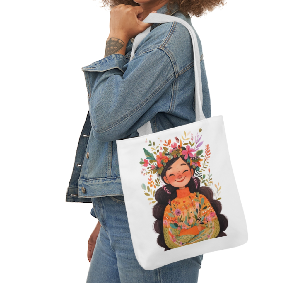 This white tote bag is perfect for any woman who wants a medium-sized bag with a stylish design. The exterior is made of a blend of polyester and cotton, while the lining is also white. The handle and strap are made of the same materials. This bag is ideal for everyday use and can easily be matched with any outfit. Whether you're running errands or going to work, this tote bag is a great accessory to have. Our white tote bags were meticulously crafted in the Philippines, with the design printed in the US.
