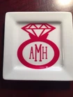4" White Ceramic Glass Ring Dish Tray Choice of FREE ring design, 1 name or 3 letter monogram. Specify in comments when you pay your choice of design and vinyl color. Vinyl lettering - specify color preference. Hand wash.