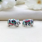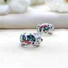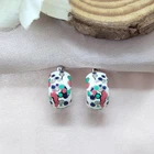 White Enamel 925 Silver Polka Dots Earrings Rhodium Plated Hoops Gift-15x10 mm