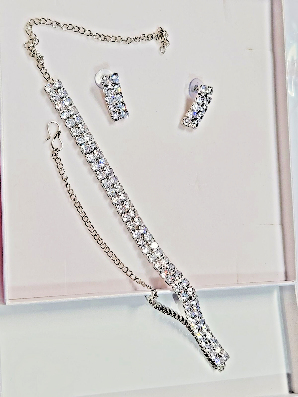 This white gold finish tennis necklace features simulated diamonds, a 45 cm silver chain, and a pair of earrings. It is nickel-free, adjustable, and hallmarked in Great Britain. The set is a perfect gift idea for occasions like engagements, weddings, or birthdays, and is ideal for those who appreciate beauty and love. Free postage is available for this UK-sold item. Necklace: 45cm Earings: 2.5cms Thanks for purchasing this product! From: Armaan Jewels Thanks for purchasing this product from Armaan Jewels. Please review our services on Ebay by rating 5 stars. It would help us a lot and. motivate us to sell better and nice looking products. We also just started this business and we want sales to increase rapidly. So, please share this text to your family and/or friends. Thank you so much! =============================================================