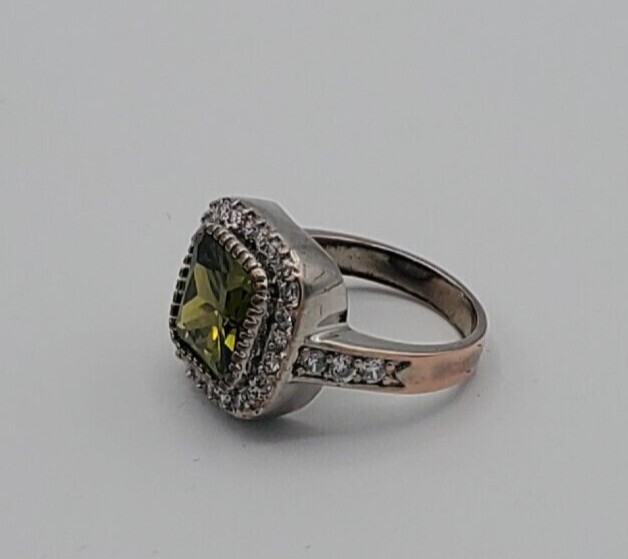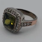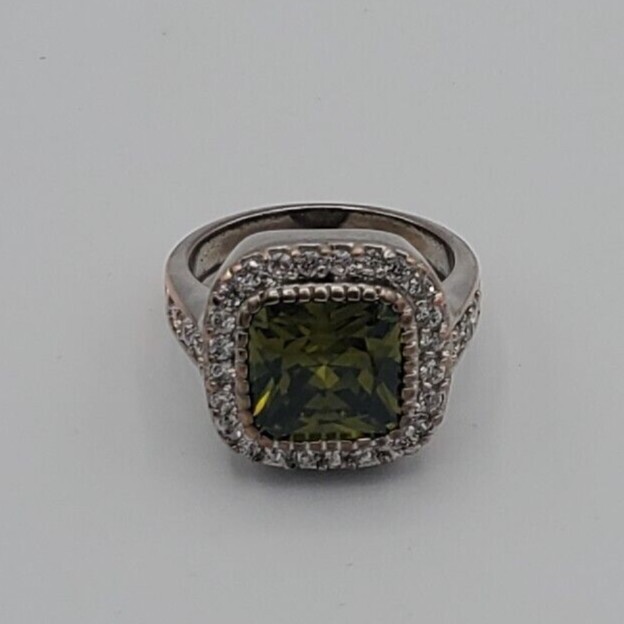 Ring Size 6 Synthetic White and Green Stones Base Metal (Costume Jewlery) Middle color stone is Green and is surrounded with white Synthetic Stones. It shines beautifully. No missing stones. It can be worn for any occasion. If you have any questions, please let me know. Thank you!