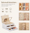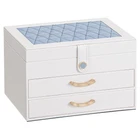 Exquisite White Faux Leather Jewelry Box: Crafted with premium white faux leather and gray-blue decoration, this jewelry box is a luxurious addition to any dresser, perfect for organizing your treasured collection Functional Drawers and Compartments: Designed with two spacious drawers and various compartments, including earring slots and ring rolls, it's an elegant organizer for all types of jewelry Soft Velvet Lining for Gentle Protection: The interior is luxuriously lined with velvet to protect your jewelry, ensuring each piece is stored with care and remains in pristine condition Convenient Size for Everyday Use: With dimensions of 8.67" x 6.69" x 5.73", this jewelry box is compact and space-efficient, fitting perfectly on your home vanity or bedroom dresser Idyllic Gift for Celebrations: A perfect present for women of all ages, ideal for occasions like Christmas, birthdays, and anniversaries, this box is a thoughtful gift for daughters, wives, and friends