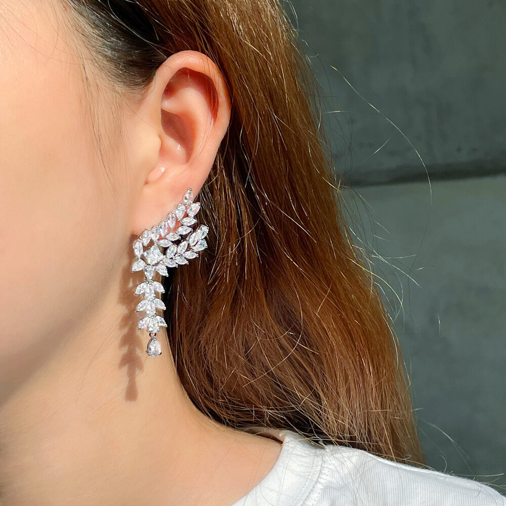 These stunning silver-plated dangle earrings are absolutely gorgeous! The white CZ stones sparkle beautifully, giving them an elegant and luxurious look. The leaf-wing design is unique and eye-catching, perfect for adding a touch of glam to any outfit. Lightweight yet durable, they’re comfortable for all-day wear, even for sensitive ears. Whether for a special occasion or everyday elegance, these earrings are a must-have!