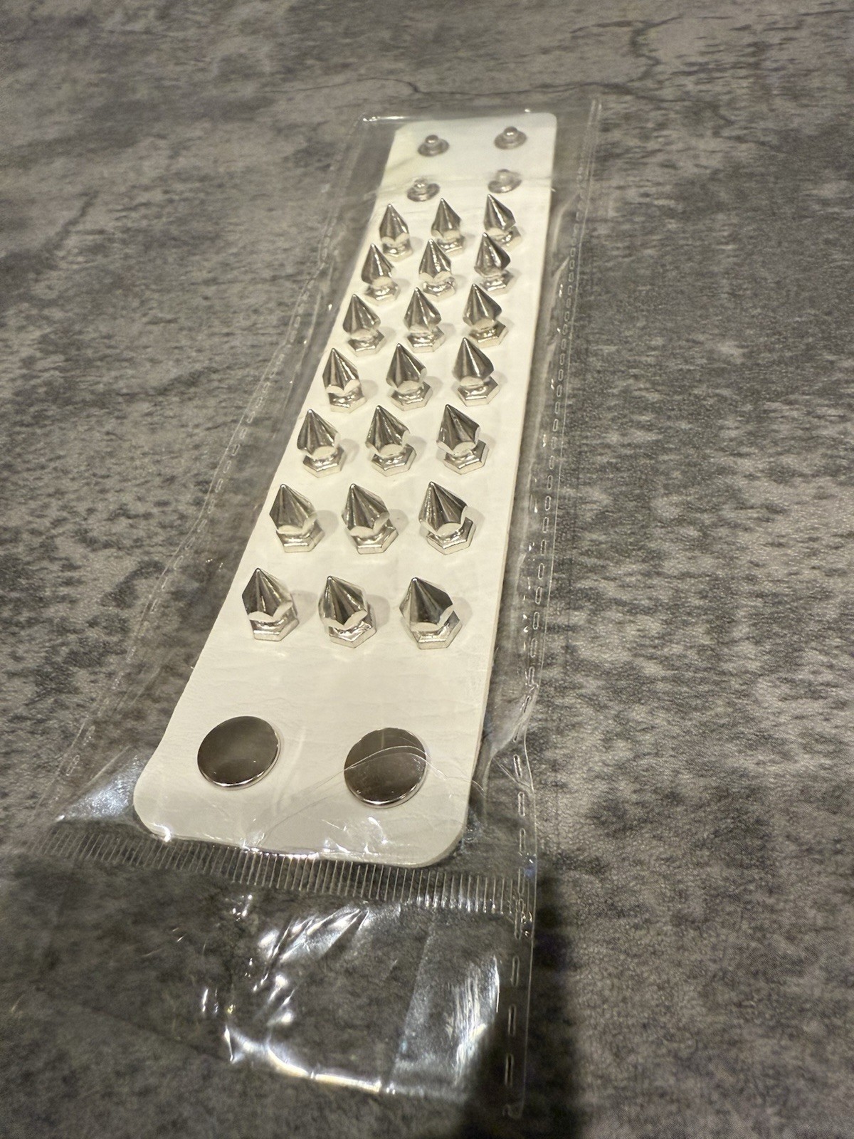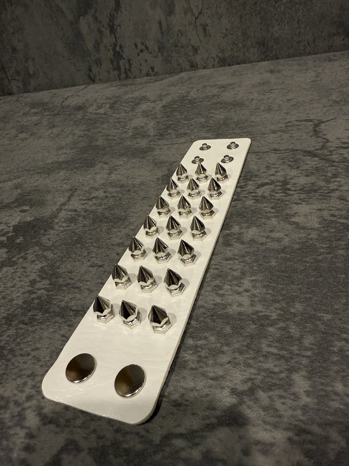 White Leather Spiked Bracelet Men And Women Unisex Grunge Emo Style. Condition is New with tags. Shipped with USPS Ground Advantage.
