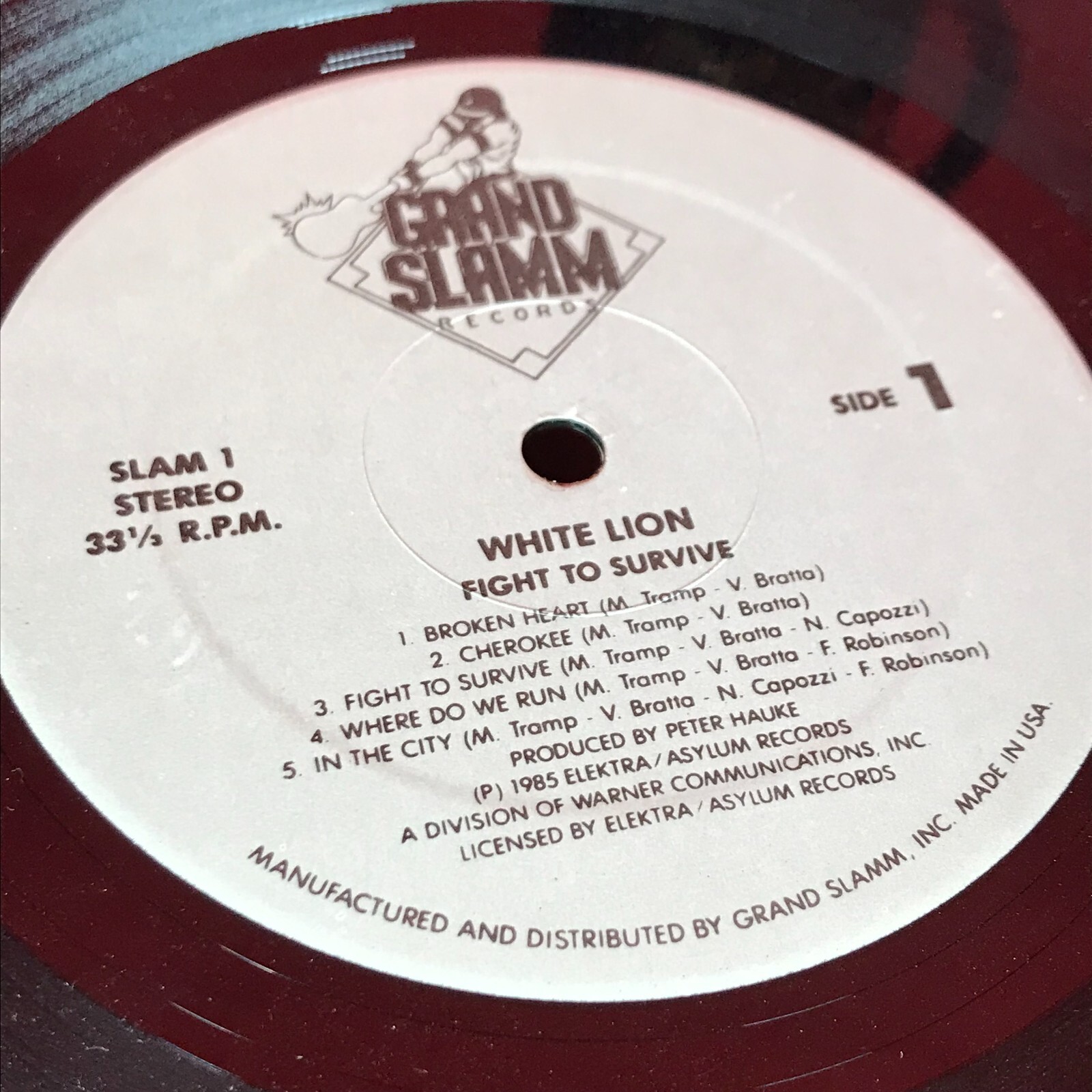 WHITE LION Fight To Survive - 1986 USA vinyl LP, the debut album by the American/Danish hard rock band, originally released in 1985 in Japan. At the time, the band were signed to Elektra Records, which shelved the album with no intention of publishing it in the USA. Philadelphia-based Grand Slamm Records bought the album from Elektra and released it a year after the Japanese release. SLAM1 1. Broken Heart 2. Cherokee 3. Fight to Survive 4. Where Do We Run 5. In the City 6. All the Fallen Men 7. All Burn in Hell 8. Kid of 1000 Faces 9. Salvador 10. Road to Valhalla Record Condition : Excellent Sleeve : Minor shelfwear (see photo) Please check out our other items !