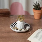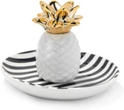 【Pineapple Design】Especial exquisite and elegant white glaze pineapple with Black and white striped tray, delicate details. Meaning: Be a pineapple, stand tall, wear a crown, and feel sweet inside.