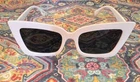 White Sunglasses Funky Retro Cat Eye Square 1960s Fun Cute Unisex