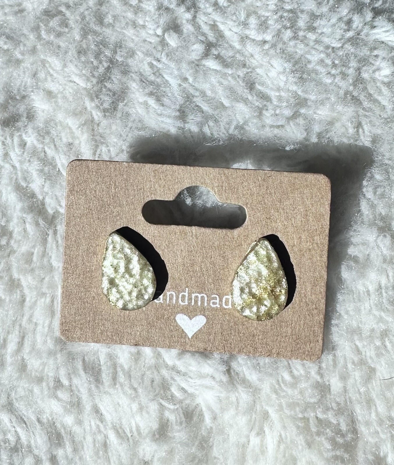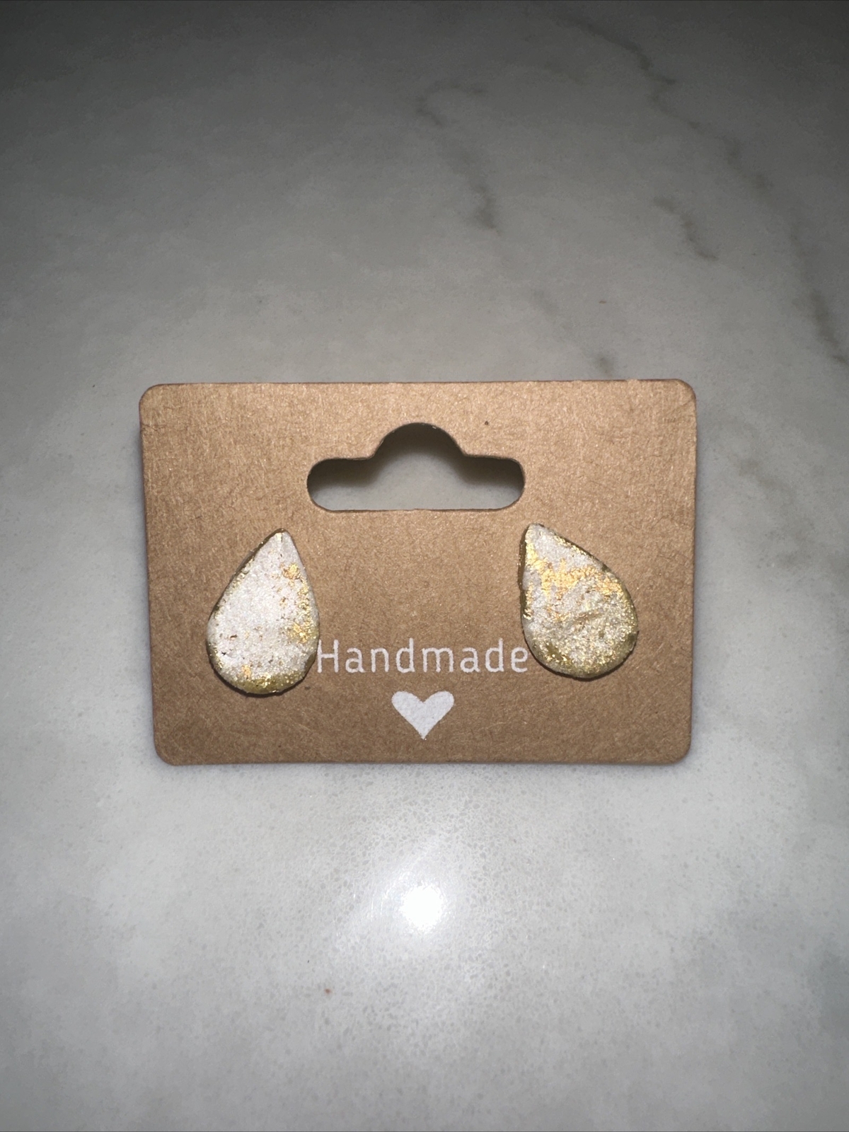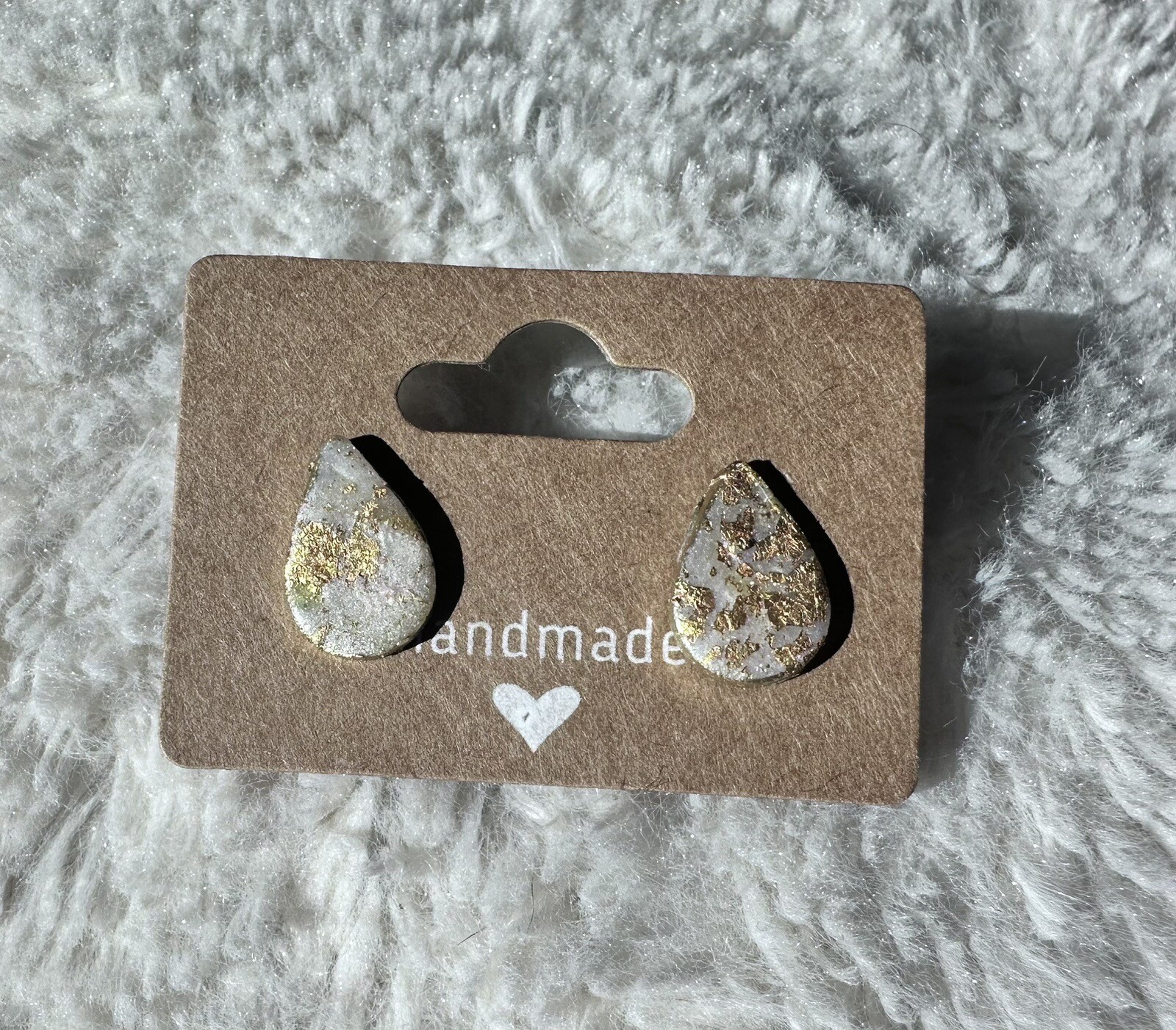 These beautiful earrings are perfect for any occasion. Made from polymer clay, they feature a teardrop shape with a stud backing. The earrings are adorned with sparkling features that add a touch of elegance to any outfit. The gold finish is sure to complement any style or color without breaking the bank! The earrings are made from polymer clay, making them lightweight and comfortable to wear all day long.