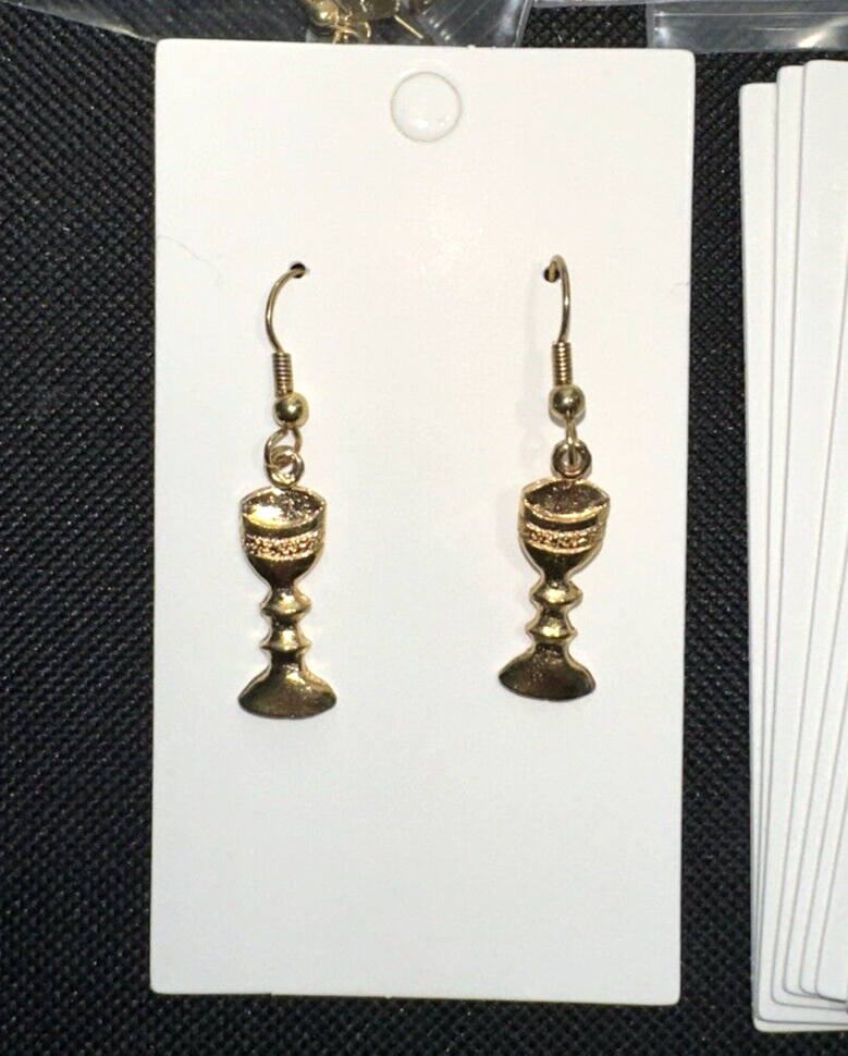 You will receive the item in the photos. Wholesale Lot of 9 Pairs Gold color Metal Earrings Chalice with Display Cards SHIPPING COST: 4.86 **** BUY MORE AND SAVE **** ADDITIONAL ITEMS SHIP FREE!!! I do accept returns. If you are not happy with your purchase, please contact me first so i can make it right. Thanks in advance for your purchase, and please leave positive feedback so i can continue to bring you awesome stuff at a fair price.