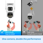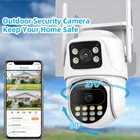 WiFi Security Camera 6MP Dual Lens Wireless Outdoor CCTV PTZ IP Night Vision Cam 6MP Dual Lens HD WiFi IP Camera Wireless Outdoor CCTV PTZ Security IR Cam Description: 6MP camera version: Means that the single lens is 3MP, so the dual-lens is 3MP+3MP=6MP. 3 million bullet camera, 3 million dome, screen up and down splicing into 6 million, clear and detailed images Dual Lens and Dual Screen:There are 2 video screens in APP, the upper one is fixed position camera and the lower one is PTZ camera. Dual-Lens with Dual Screen Auto Tracking PTZ WIFI Camera Dual lens, Dual screen, Notifications alarm, humanoid tracking, two way voice intercom 360 monitoring, full color night vision, IP66 waterproof, mobile phone remote monitoring,Share video, SD card storage, 24 hours video recording Specification: Name: 6MP Binocular HD Wireless WiFi Network Camera APP:ICSEE Color: White Waterproof Grade: IP66 Lens: 3.6mm Pixels: 6MP (3MP+3MP) Total Resolution: 2304*2592 (Single Pixel: 3MP) Sensors: Two 3 Million High-performance Cmos Sensors. Noise Reduction: Supports 2D/3D Noise Reduction. Video Encoding: H.265AI Frame Rate: 12 Frame PTZ Control: Horizontal Rotation: 270° Vertical: 90° Intelligent Analysis: Supporting Humanoid Detection Tracking Function: Support Humanoid Tracking. Light Source: 4pcs White Led + 4pcs Infrared Led+6pcs Double-core Light Led. Lighting Mode: Starlight Full Color/Infrared Night Vision/Double Light Alert Night Vision Mode: 3 Modes (Infrared Night Vision, Full-color Night Vision, Double-light Warning) Night Vision Distance: About 10 Meters (Varies with the Environment) Two-way Voice: Support Support Protocol: Support Netip Protocol and Onvif Protocol. Network Interface: 10m/100m Adaptive Ethernet Port. Storage Interface: Local Tf Card (Maximum Support 128g, TF Card Is Not Included ) Cloud Storage: Support (Can Buy at App) Recording Mode: Manual Recording, Alarm Recording Reset Key Interface: Support One-button Factory Setting Recovery. Power Consumption: 10W Operating Environment: Minus 10℃-60℃, Humidity less than 90%. Power Supply: DC 12V Alarm Action: Mobile Phone Client Push Connection: Bluetooth Connection & Wifi Connection & Network Cable Connection Network Connection: Wifi Network Interface: Only Supports Wi-fi/802.11/B/G (2.4ghz); Does Not Support 5 Ghz Wireless Standards: IEEE802.11B, 802.11G, 802.11N Features: 1. Dual Camera & Dual Screen: Our Dual Lens house camera indoor has two 3MP lenses. You can monitor two areas at the same time. The lower camera can rotate 270° horizontally and 90° vertically. The higher lens is fixed. 2. AI Human Detection Alerts : Quickly finds human targets and immediately sends App notifications to your phone so you can see what's happening anywhere. 3. AI Auto Tracking: When someone passes through the protected area, the camera will detect the person's movement and follow the person. 4. Smart Night Vision: Built -in White LED and IR LED, you can choose color night vision or infrared black and white night vision. 5. Two Way Audio: Built in microphone and speaker,support real time video,you can talk to your friends,vistors or family through ICSEE APP anytime, anywhere, or scare away uninvited guests. 6. 2.4Ghz Wifi Connection & LAN Connection: Powered by DC12V adapter, you can connect the camera to Wi-Fi network. you can setup wifi connection of the camera or LAN Search with network cable connected to router, work with 2.4G wifi only (Does not support 5G). 7. Support TF Card Storage and Cloud Storage: The camera supports up to 128GB TF card (not include tf card) ,automatic loop recording and also provides cloud storage service (Need to pay extra cost). 8. IP66 Waterproof / Dustproof: The camera is equipped with IP66 case , which is waterproof, sun-proof and dust-proof. It is suitable for any environment. 9. Remote Access/Multi-User: Share the same camera with your families , let all of you protect and pay more attention to your house.It let you be able to view the live situation of your house wherever you are , just with the APP account on the app via your Smartphone or tablet. Package List: 1 x Camera 1 x Power Adapter 1 x Instructions 1 x Screw Bag 1 x Waterproof Cap Accessories Kit Note: The memory card of the camera cannot be lower than Class 6 or higher, and Class 10 is recommended. The larger the number, the better the storage effect FAQ: Q1: Do cameras really have 6MP pixels? A1: 3K 6MP camera, which means single lens is 3MP ,so dual lens is 3MP+3MP= 3K 6MP Q2: What should I do if the device is connected but cannot talk? A2: In the lower left corner of the APP monitoring screen, click the "horn" button, and press and hold the "microphone" button to speak, you can release the "microphone" button after speaking; Q3: What should I do when the SD card cannot be recognized? A3: Please turn off the power of the camera, then insert the card first, and then reconnect the wifi after power on (it is wrong to insert the card after connection); Q4: What software does this camera support? A4: Support icsee. Q5: Does it support 5G WiFi ? A5: 5G WIFI is not supported, it only supports 2.4G WIFI; If you use 5g router, 5G and 2.4G use the same connection hotspot (that isSSID is the same), you can connect directly.lf 5G and 2.4G are not the same connection hotspot (that is,SSID is different, generally SSID of2.4G is xxxxx-2.4G,SSID of 5G is xxxxx-5G),please connect WiFi of mobile phone to hotspot of xxxxX-2.4G ofrouter before configuring camera. Q6: How to set up "Auto Tracking"? A6: In the upper left corner of the functional area of the APP monitoring screen, click "Mobile Tracking", and click the "On/Off" button; Q7: How to do if the camera is not connected or offline? A7: 1.Check if the camera power or network of router normally 2.Plug the camera power to restart camera. 3.Restore the camera to factory settings. Q8: What is the function of this camera? A8:Humanoid detection, motion tracking, 2 Ways Audio, PTZ Remote Control on the Phone, Informat