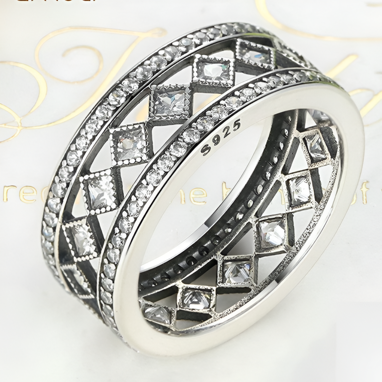 The Elegant 925 Sterling Silver Square Vintage CZ Ring is the perfect solution for those seeking a dazzling and sophisticated accessory. This wide, dome-shaped ring features a stunning arrangement of princess cut and round cut pave clear CZ stones. Made from 100% solid sterling silver with a 925 stamp, it is nickel-free and hypoallergenic, ensuring it won't tarnish or irritate the skin. This ring is ideal for pairing with diamond, moissanite, or CZ engagement rings and makes a thoughtful gift for any special occasion. With its luxurious design and durable material, it is suitable for daily wear, providing both elegance and comfort. The ring measures to fit most sizes and is designed to shine brightly, enhancing any outfit. SPARKLING DESIGN: This wide, eye-catching ring features a dome shape with a blend of princess cut and round cut pave clear CZ stones. Ideal for those who love elegant, standout jewelry. The ring is crafted in 925 sterling silver, ensuring quality and durability. HIGH-QUALITY MATERIAL: Made from 100% solid sterling silver with a 925 stamp, this ring is nickel-free and hypoallergenic. It won’t tarnish or turn your finger green, making it a reliable choice for daily wear and special occasions. VERSATILE STYLE: Perfect for matching with diamond, moissanite, or CZ engagement rings. Its versatile design makes it a great addition to any jewelry collection, adding a touch of sophistication and sparkle. THOUGHTFUL GIFT: Ideal for birthdays, anniversaries, Valentine's Day, or any special occasion. This statement ring offers a luxurious look at an affordable price, making it a perfect gift for the fashionista in your life. DAILY WEAR FRIENDLY: Shine like a natural diamond with this high-quality, stackable moissanite promise ring. The wide design is both comfortable and stylish, suitable for everyday wear or special events.