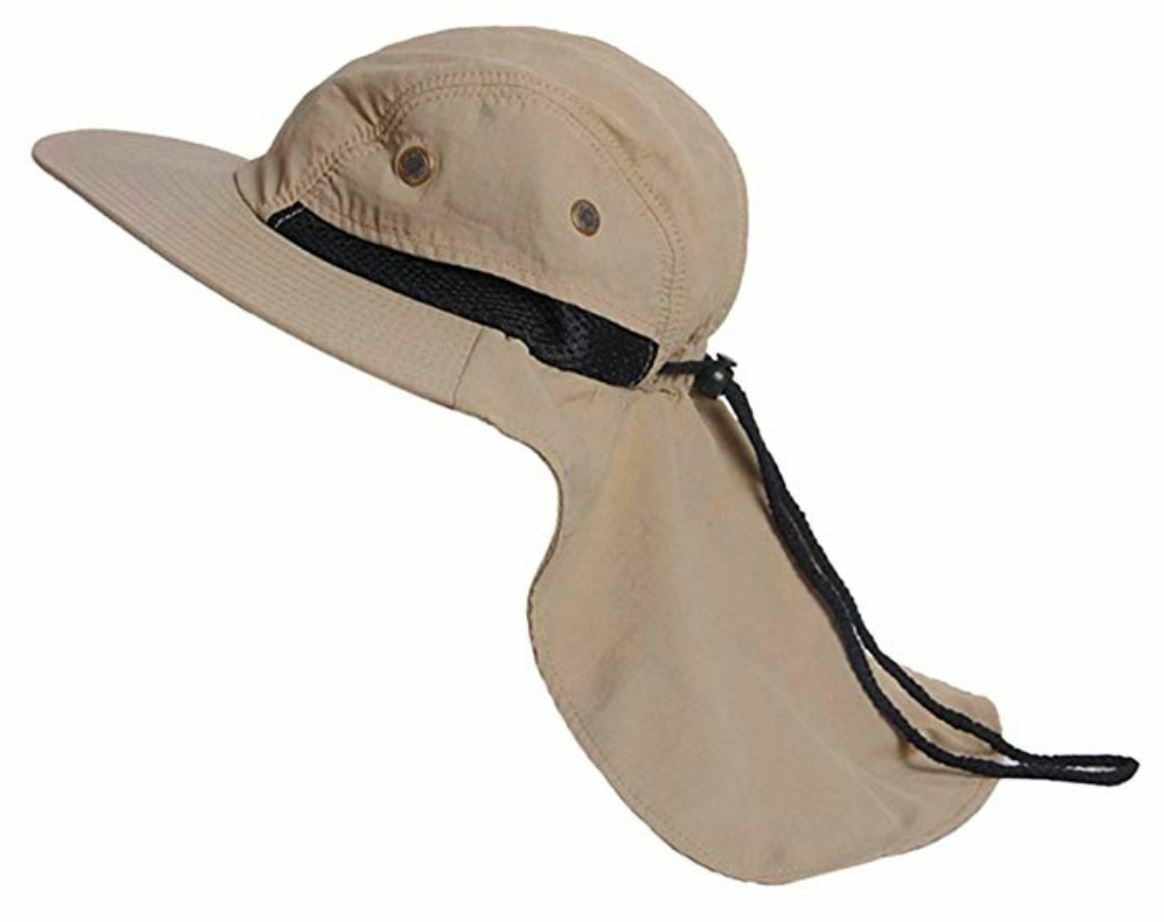 Wide Brim Bucket Flap Bonnie Hat Brim Neck Ear Cover Cap Fishing Hiking Hunting One Size Fits Most Good for Outdoor Activities: Fishing, Camping, Hiking etc.. Drawstring to Secure Hat on a Windy Day Protect Neck and Ear Mesh for fresh air