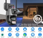360 Wireless Outdoor 6K 12MP WiFi Security Camera ICSee Smart Three Lens 8X Zoom Video Surveillance IP Camera CCTV Auto Tracking Main Features: Dual screens, monitoring multiple locations simultaneously, without blind spots. Three Lens and 8X Digital Zoom. Video recording is clearer. 1. 12MP Ultra HD High Definition Display, Advanced H.265 Video Compression; 2. 12MP Ultra HD WIFI IP Camera, ABS Plastic material,IP66 Waterproof&Dustproof, Suitable for indoor and outdoor, reliable home security; 3. Support AP Mode / Wifi / Wired Connection, Plug and play , Easy to Setup; 4. Support AI Human Motion Detection,Provides ultra high definition surveillance video images, providing maximum detail and clarity available; 5. Support Two way Audio Recording, All Camera are built-in Microphone and Speaker; 6. Support Ultra HD Full Color Day Night Vision; 7. Support IR-CUT dual filter switch, day and night to achieve monitoring, color is not partial color distortion; 8. Support install TF Card up to 128G, Cloud Storage; 9. Support Android, Iphone IOS etc,Multi-User view; 10. Remote Access and Control Anywhere, Anytime; 11. Suitable for all kinds of application places; 12. PTZ remote control by mobile terminal; 13. App: ICSee/XMEye pro 6K High Definition Display 6K camera, means the Three lens each one is 4MP 4MP+4MP+4MP=12MP 8X Digital Zoom Camera can zoom in to view more detailed information of other objects without getting close, or zoom out to get a larger and larger view. Clear Two Way Audio Camera is built with microphone and speaker. So you can talk to your kids via your Smartphone remotely whenever you want. AI Human Auto Tracking When someone passes through the alarm area, the camera will detect the person's movement. And track people. Motion Detection Alarm Any suspicious movement thrown into the camera' eye will be detected and recorded, leaving thieves and robbers nowhere to hide. At the same time, you will receive instant APP alarm pushes on your smart devices wherever you are. Full Color Night Vision When the white LED light is on, the camera will display colorful vision at night, and there are three night modes for you to choose. PTZ Control by APP PTZ system,a wider range. Pan Tilt Rotation, Horizontal:355°& Vertical:90° IP66 Waterproof The camera is equipped with IP66 case , which is waterproof, sun-proof and dust-proof. It is suitable for any environment. Support TF Card Storage and Cloud Storage(Need Pay For) The camera supports up to 128GB TF card local backup and also provides cloud storage service(Need to pay extra cost) P2P Remote Access Share the same Vision with your families , let all of you protect and pay more attention to your house. P2P technology let you be able to view the live situation of your house wherever you are , just with the P2P account on the app via your Smartphone or tablet .