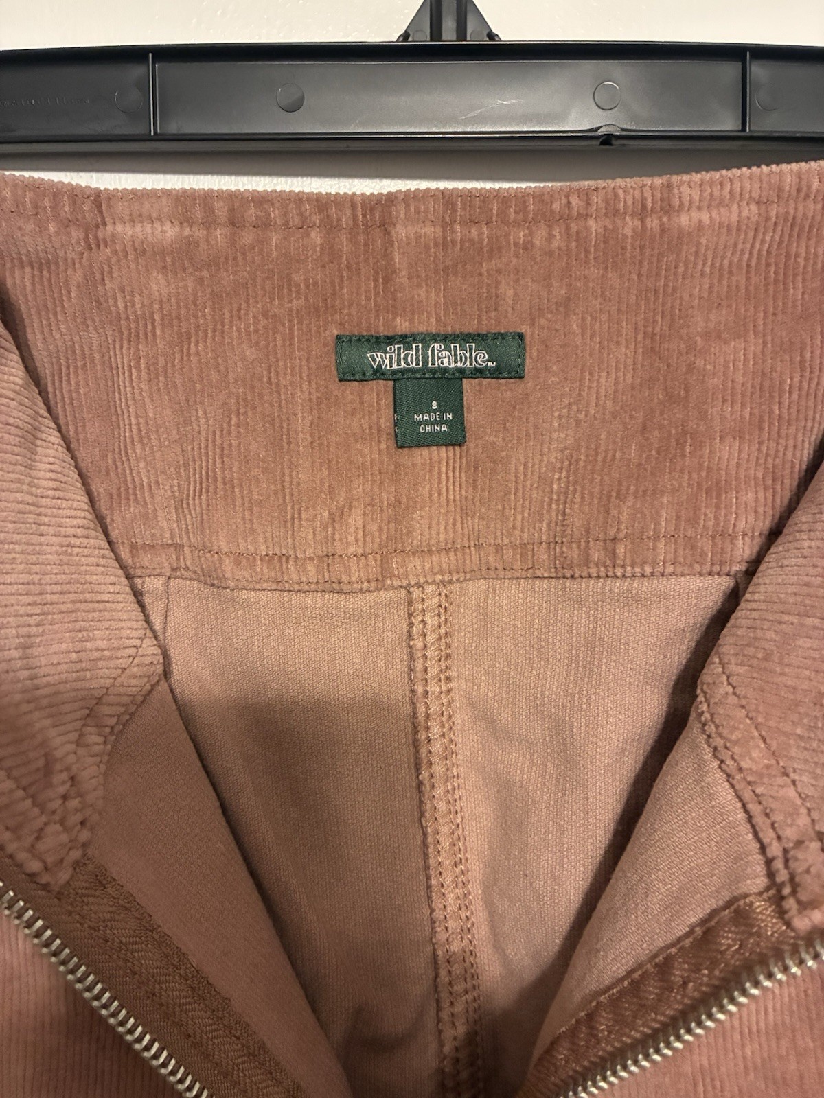 The Wild Fable Women’s Pink Corduroy Mini Skirt in size 8 is a stylish and versatile piece perfect for casual or travel occasions. Made from a blend of polyester, spandex, rayon, lyocell, and cotton, this skirt features a zip closure and a solid rusty pink color. With a short mini length and a flattering silhouette, this Wild Fable skirt combines trendy style with comfort and practicality, making it a great addition to any woman's wardrobe.