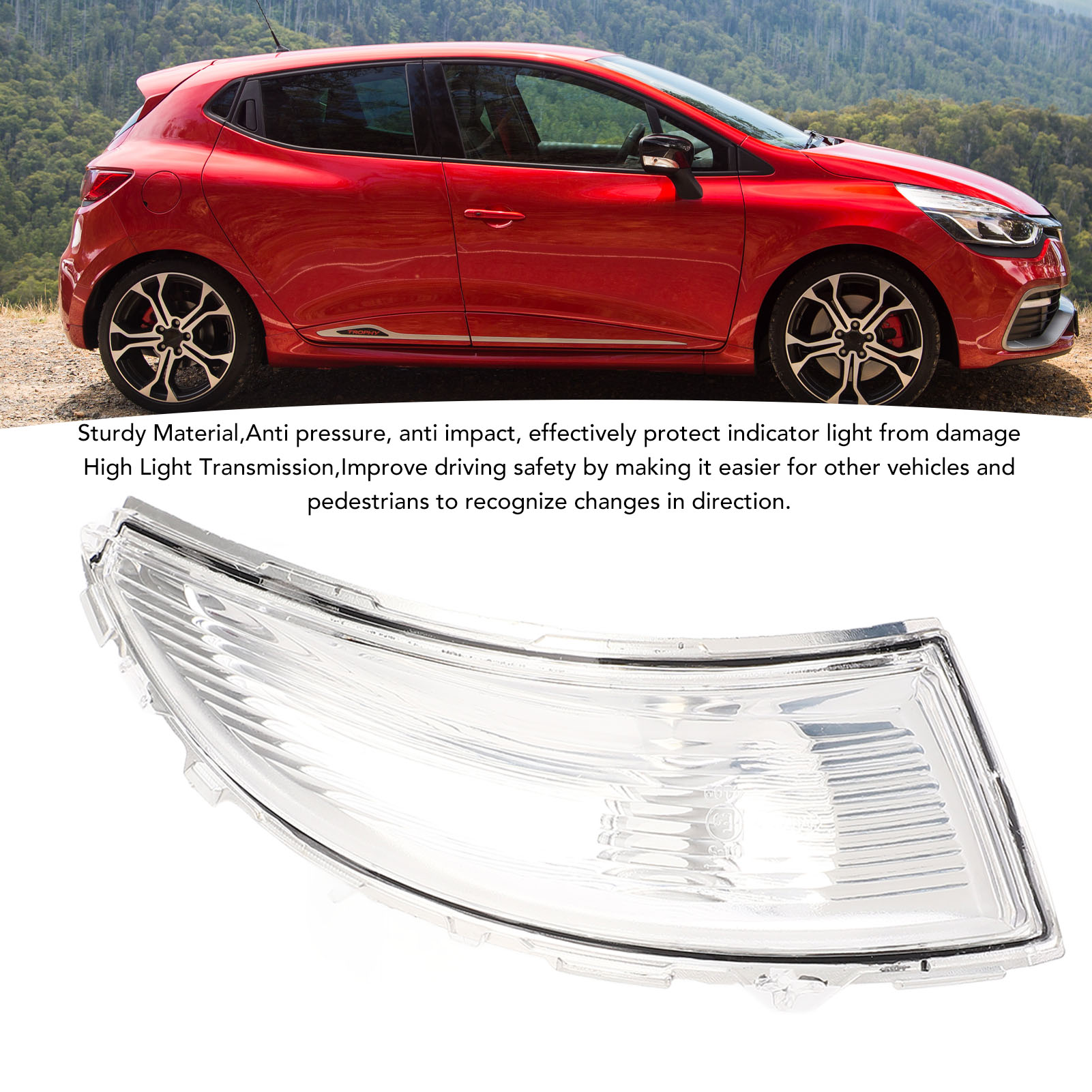 Feature: 1. Vehicle Fitment: Wing mirror indicator lens cover is fit for Clio 2013-2019; for Captur 2013-2019; please confirm whether your model is applicable before buying. 2. Rugged Construction: Made from ABS PC materials, this side mirror turn signal light lens features exceptional anti pressure and anti impact properties, effectively safeguarding the indicator against everyday damage and wear. 3. Enhanced Visibility: The indicator light lens is designed for optimal light transmission, significantly improving driving safety by ensuring that turn signals are clearly visible to other drivers and pedestrians. 4. Weatherproof Design: Turn signal lamp housing has excellent sealing performance, resistant to high and low temperature, ensuring durability and long use life in any weather conditions. 5. Precision Fit: Engineered with original vehicle standards, turn signal indicator lens cover ensures a seamless fit while serving as a direct replacement for damaged indicator lens covers. Specification: Item Type: Wing Mirror Indicator Lens Material: ABS+PC Fitment: Fit for Clio 2012-2019 Fit for Captur 2013-2019 Package List: 1 x Wing Mirror Indicator Lens Note: 1. Before purchasing, please double check the OEM number and Fitment model to ensure compatibility. 2. It is highly recommended to have the installation carried out by a professional mechanic. 1. Our listing price includes the value of goods,packaging cost,and export taxes,not including international duties. 2. duties,taxes,and charges are not included in the item price or shipping fee. 3. The duties are buyers' responsibility.Please check with your country's customs office determine what these additional costs will be prior to your purchase. 4. All disputes arising from the duties will be submitted to ebay for solution. 1. Any questions, pls. contact us via ebay message or email us.We will reply your message within 48 hours. If you do not receive our reply within 48 hours, pls. post a message again because sometimes our message system may block some emails. 2. If you are satisfied with our service, pls. kindly leave us a positive feedback and give us the Detailed Seller Rating with all "5 " in very area 3. Our aim is to provide Level Customer Service, your recognition will encourage us greatly and serve you better. We strive to keep all our customers satisfy. We will do our up most to exceed your expectations in customer service, communication and dispatching of your orders. On Dec 18, 2024 at 01:09:31 PST, seller added the following information: