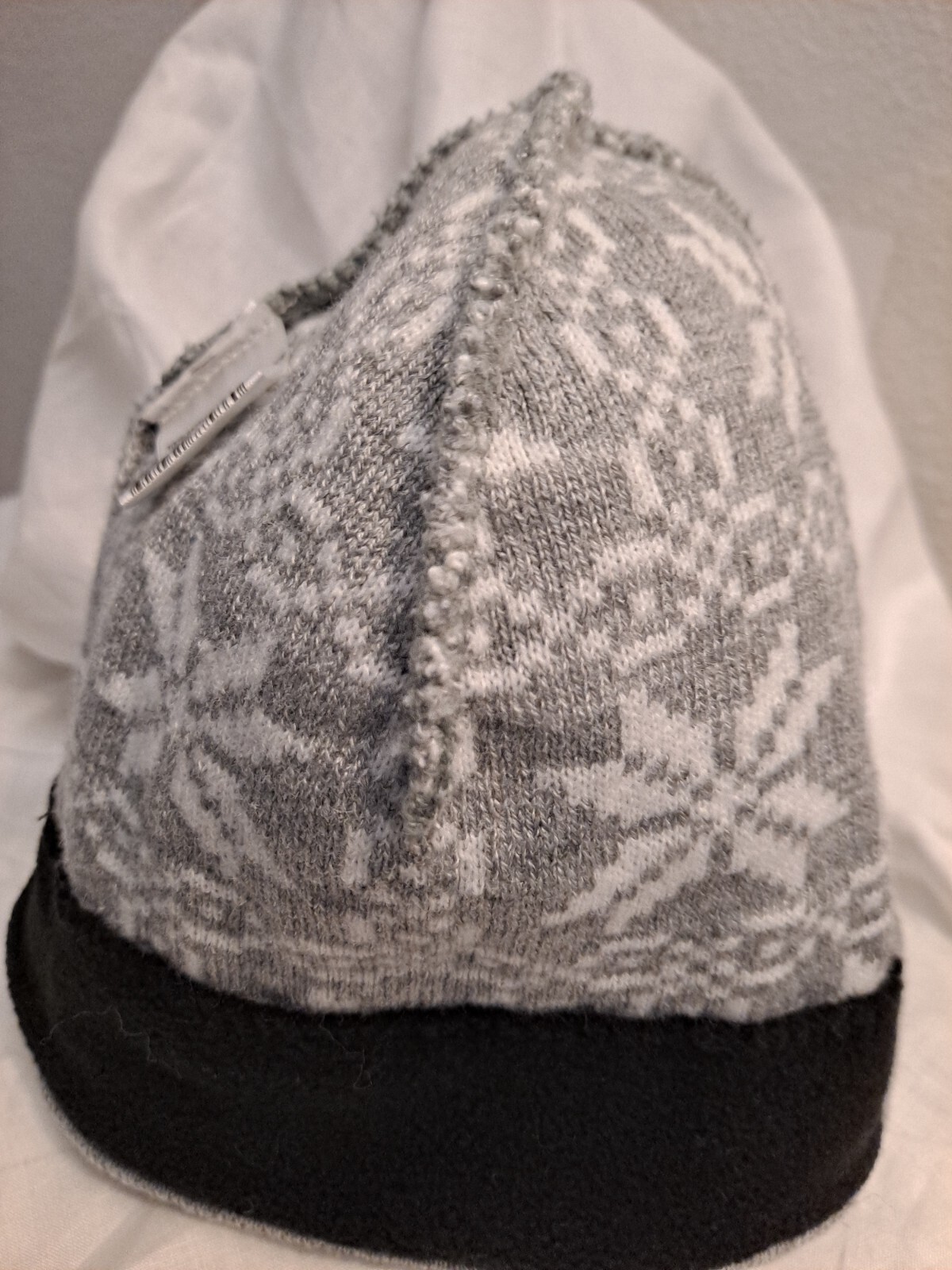 Beanie Hat Unisex, Adult, winter, snow Flakes, stretchable White & Gray.