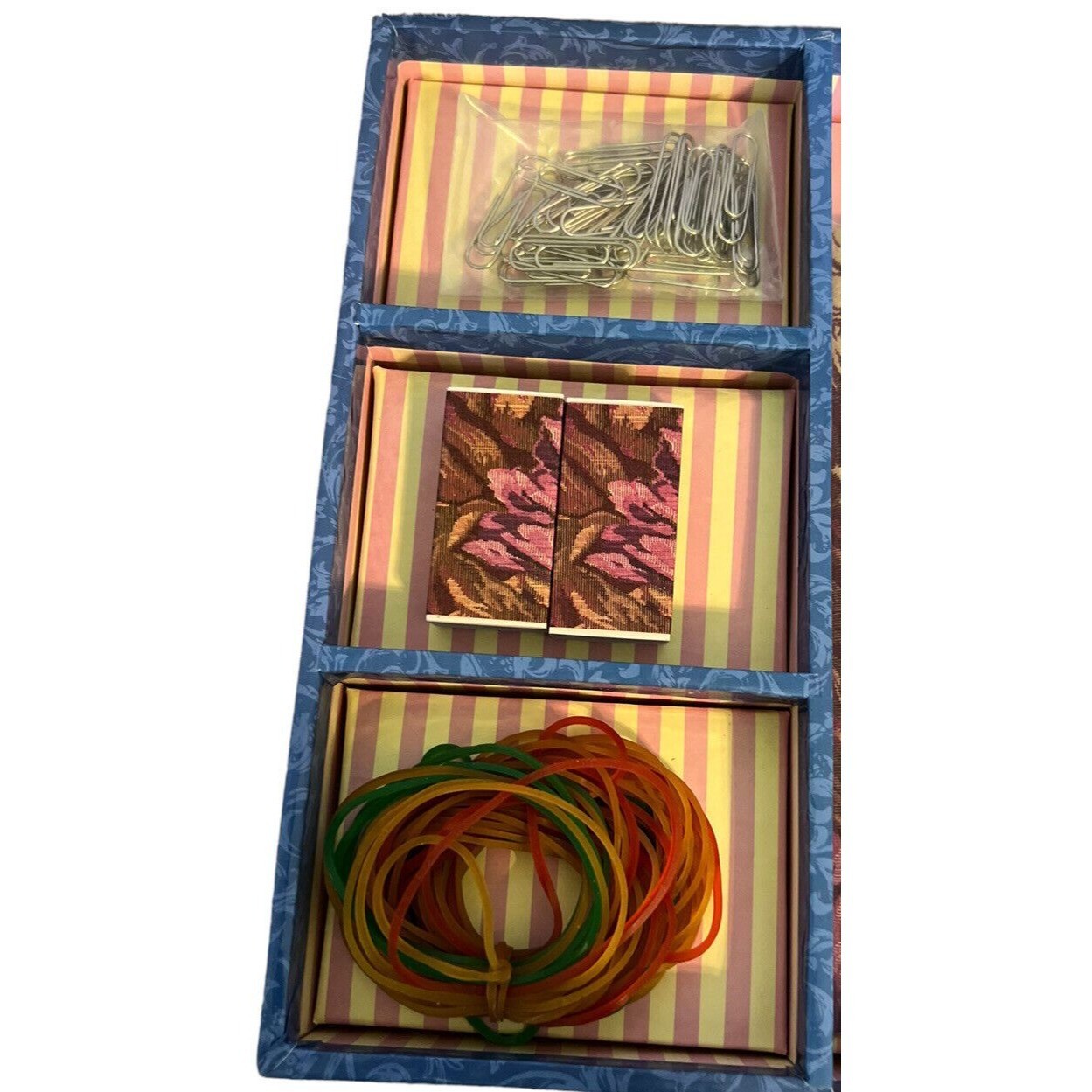 Journal Desk Set Includes Wire Bound Journal Note Book Address Book Paper Clips Rubber Bands Erasers Pink Strip Floral