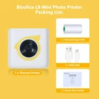 Specification: Model: L8 Color: Yellow, Green (Optional) Material: ABS Size: 87x83x40mm Weight: 147g/5.2oz Input: DC5V,1A System: iOS & Android Connection: BT Power Supply: Rechargeable Lithium Battery Battery: 3.7V 1000mAh Resolution: 203dpi Print Type: Thermal Printing Paper Width: 57.5±0.2 mm Roll Diameter: 30mm Effective Print Width: Max.48mm Print Speed: Max. 10mm/s APP Language: Chinese, English, Japanese, French, Italian, German, Spanish, Korean, Thai Thermal Paper Compatible: Regular/Adhesive/Label (Note: The label paper should use the official designated label paper) Package Size: 13.9 x 11.3 x 4.5cm/5.4 x 4.4 x 1.7in Package Weight: 300g / 10.6oz Notes: 1. Android: Download Link: http://www.pgyer.com/pao-release Password: 111111 or you can download APP(HerePrint) from Google Play Store. 2. IOS: You can download APP(HerePrint) from APP Store. 3. BT connection is only available via APP. 4. The label paper should use the official designated label paper. Packing List: 1 x Thermal Printer 1 x Thermal Paper Roll 1 x USB Cable 1 x Quick Start Guide 【Newly Upgraded Thermal Printer, Smoother and Clearer Printing】The printer adopts high-quality print head, thermal technology, can print 58mm (width) x30mm (roll diameter) thermal paper, 203DPI resolution, excellent and good clarity printing effect. ⚠️Note: If there is a blank print, it is because the paper is placed upside down and just needs to be turned over to print correctly. 【Print What You Want Anytime, Anywhere】The small portable pocket mini printer, weighs only 5.2oz, built-in 1000mAh rechargeable battery, runs with low noise, can be carried anywhere, print your ideas anytime, anywhere, and is a cost-saving smart printer. It will be a good helper for your travel or work! 【Multifunctional Apps & Easy to Use】Supports wireless Bluetooth 4.0 to connect with smartphones, please follow the user guide to download the relevant APP "HerePrint" on your smartphone, and you can print with one button after the connection is successful, saving time and effort. The application provides a variety of fonts, filter effects and themes to make your black-and-white images more high-definition. Compatible with Android and iOS systems. 【No Ink Required but Still Powerful】Compared with traditional printers, no toner or ink is required, convenient and economical, and the cost is lower. The new inkless pocket printer is used to print black and white photos, memos, labels, notes, shopping lists, cute stickers, QR codes, etc. It can play an excellent role whether it is in study, home or office. 【Unique Appearance As a Perfect Gift】Unique parrot shape, cute and beautiful. Perfect for Halloween, Thanksgiving, Christmas and an ideal birthday, anniversary, holiday gift for family and friends.