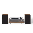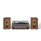 The Record Player with Speakers blends classic styling and modern technology. Ensuring your latest record store haul sounds its best, the turntable features a high-performance Audio-Technica cartridge. The belt-drive motor, shock-absorbent feet, and adjustable anti-skate deliver smooth playback. With Bluetooth connectivity, you can take a break from vinyl and stream your favorite digital playlist. 120-watt bookshelf speakers are included so you can enjoy every note. Upgrade your audio setup with the Crosley C62 and indulge in the analog world of vinyl records. 2-Speed Vinyl Record Player (33 1/3 & 45 RPM) Turntable Dimensions: 5" x 16.5" x 13.5" Audio-Grade MDF Plinth Speaker Dimensions: 9.875" x 6.25" x 6.25" Low-Vibration Synchronous Motor Adjustable Tonearm Counterweight Aluminum Tonearm Vibration Control Feet External Full-Range Stereo Speakers Cueing Lever Pre-Mounted Moving Magnet Cartridge RCA Output Switchable Preamp Built-in Bluetooth Receiver Clear Dust Cover Belt-Drive Motor