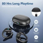 【80 Hrs of Playtime & LED Digital Charging Case】Each earbud provides up to 10 hours of listening time per charge. With the charging case, you can enjoy up to 80 hours of music wherever you go.The BX30 bluetooth headphones also feature a dual LED digital display that shows you the battery status in real time. 【2024 Upgraded Bluetooth 5.3 & 0.1 s Auto Pairing】The headphones wireless use the latest Bluetooth 5.3 wireless technology, with 2X faster signal transmission and 45% more stability to ensure a smooth experience. The wireless earbuds are widely with most Bluetooth devices: iPhones, Android mobile phones, iPads, etc. They are suitable for Android 4.4 or iOS 8.0 and above. 【85% Bass Enhancement & ENC Clear Calls】The wireless headphones features a large 14.5mm speaker driver unit with 85% bass enhancement for an immersive listening experience. micrs enhance conference calls and reduce external ambient noise for clear calls. Ideal for music lovers and those who need to use it for web conferencing and online classes. 【Comfortable to Wear & IPX7 Waterproof】The Bluetooth earbuds with 3 pairs (S/M/L) of soft silicone wireless earphones, stable and even force. The non-slip design on the end of the earhooks will not fall off even with strenuous exercise. Featuring IPX7 seam sealing and nano-coating waterproof technology, making them resistant to daily sweat and rain. 【Unique Button Design】The bluetooth earphones feature a new button design. Allows you to access music play/pause, change tracks, volume +/-, activate Siri, answer/hang up calls and more.