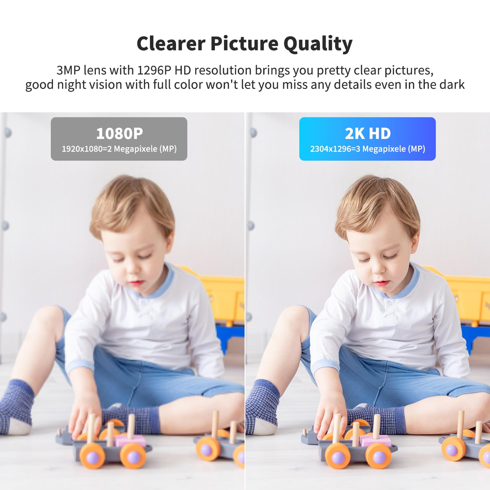 【2 IN 1 Camera & Dual Lens Dual View】Cameras for home security features dual lenses to monitor two different areas at the same time. The pet camera fixed panorama camera always monitor a key area, and the 3MP tracking camera supports 301° pan and 70° tilt 【Two-Way Audio & One-Click Call】The indoor security camera wireless comes with a built-in microphone and speaker, two-way audio calls. One-click call function allows you to initiate active communication with the person on the other side of the mobile app 【1296P HD Resolution & Color Night Vision】This battery operated security cameras captures every detail inside your home with crystal-clear 1296P resolution. The baby/pet camera provides full-color night vision, easily see it even in complete darkness 【Human Detection & Auto Tracking】Baby monitor with camera and audio with phone app uses AI algorithm recognition to accurately detect human figures and send alerts to your smartphone. Meanwhile, the baby camera monitor will automatically track and record the movement 【Privacy Protection Mode & Optional Storage】When no need for monitoring, just click the "Privacy masking" on your phone app, the inside cameras for house will enter to privacy protection mode.This camara ocultas para cuartos support TF card/ cloud storage 【Device Sharing】In home cameras with app for phone wireless. View your WiFi camera feed from two different smart phone devices. Now mom and dad can both see what's happening at home with a single camera, making keeping an eye on the little ones just a bit easier 【2.4Ghz】Only supports 2.4G connection, and the wireless distance of 2.4 is relatively far. 5G is usually used when the device and router are in close proximity