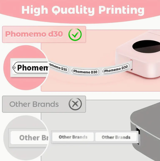 2024 Upgrade Version Label Maker - The Phomemo D30 label maker Supports continuous label tape and labels in fixed length. It is half the weight and size of the traditional label maker, equipped with a German thermal print head, DPI increased by 25% for printing providing superior print clarity resulting in hassle-free printing, smooth printing effects, and fast processing. Save Money - Direct thermal technology - The D30 label makers are inkless printing and don't require ink, toner, or ribbons. With lots of thermal colorful label tapes of your choice, the cost is tangible and much lower compared to most label-maker printers.(This label maker is Monochrome Printing Output, which only prints black text. We can create color-label artwork, printing with color-patterned label tapes is required. ) Multiple Creative Function & Convenient Label Templates - Choose from a wide variety of pre-designed templates including 1000+ symbols, 60+ frames, and a variety of fonts, Convenience and saving time. Easy to create various design label stickers from App with Icon, texts, tables, symbols, logos, barcodes, QR codes, images, time, insert Excel, Scan, Ocr, and Voice RECG, it is fun and effortlessly Wireless & Portable - Mini-size wireless -connected Phomemo label printer for Convenient & Fast printing, easy to create labels from smart mobile devices. Built-in durable and recharge battery for long working time, slide into your pocket, easy to carry anywhere. Ideal Gifts - The Phomemo D30 Sticker Printer Machine is used widely in organizing home supplies - storage, food date marking, classifying cosmetics items, jar stickers; School name labels, study note and office files classification, cable identification, personal item identification, name tags; Small business - price tags, jewelry tags and more.