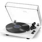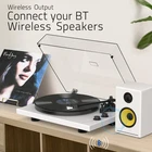 Multifunctional Retro Turntable System 1. Authentic Belt Drive System This turntable for vinyl record constructed with iron plate, polished stainless steel spindle, durable rubber belt, it produces a uniform inertial mass for perfect stability and rotation. 2. Adjustable Counterweight Design Setting counterweight makes tonearm balanced according to the stylus weight to ensure the stylus needle sits perfectly in the groove of the record, maintains the clarity of musical peaks, balances the channel, and provides freedom from noise and distortion to prevent scratches on vinyl records. 3. Wireless Bluetooth Output Record player with bluetooth output help you pair wireless speakers or headphones and get rid of wires! Suddenly, the best place to place a turntable and your favorite listening position don't have to be the same. Just pair and listen how and where you want. Even better, no receiver is required. 4. Built-in USB Digital Output Retro record player connect this turntable to your computer via the included USB cable and encode the vinyl audio to MP3 for digital storage and playback on your computer, smartphone or tablet. Listen to your vinyl records wherever life takes you! 5. Built-in Phono Preamp and Analog Phono/Line out Enjoy vinyl playback from any amplifier with the built-in MM-type preamp. Your phonograph turntable includes phono and line outputs, and can be played with or without a phono equalizer. 6. Two-speed Vinyl Player It supports 2-speed turntable (33 1/3, 45 RPM) to play all 7" 10" 12" vinyl records and favorite albums. 7. RCA Line Output Use RCA cables with red and white jacks to connect to external powered speakers for a multi-speaker sound quality experience~ Wireless Output Connectivity - Turntable pair with BT speakers or headphones for an amazing, wire-free experience, no receiver needed. Note: this turntable for vinyl records is compatible with Bluetooth protocol HFPV1.5, A2DPV1.2, AVRCPV1.4, HSP1.2, GAVDP1.2, IOP Moving Magnetic Cartridge ATN3600L Stylus - This record players with diamond-tipped stylus cartridge which is designed to produce rich sound and outstanding clarity, tracking your record’s grooves with precision for accurate, high-definition audio Precision-manufactured Iron Turntable Plates - Instead of aluminium die-cast discs, the iron plate of turntable produce uniform inertial mass, and counterweights are combined with advanced HiFi systems for perfect stability and rotation. Raise high fidelity playback to the extreme level Vinyl Recording via PC - Connect this vinyl record player turntables to your computer via USB and encode vinyl audio into MP3s for digitized storage and playback on your computer, smartphone or tablet. Take your favorite vinyls with you on-the-go Adjustable Counterweight Force - Get perfect playback every time using the tonearm counterweight and advanced high quality system. These ensure the stylus is balanced and rests deep in your record’s groove, producing smooth stylus movement