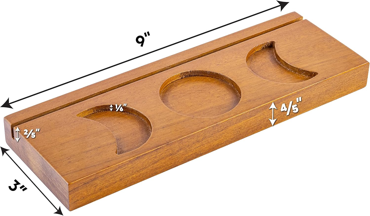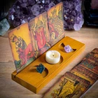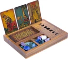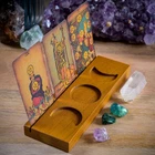 Display Tarot Cards — As practical and it is functional, this tarot holder can be placed anywhere in your space and is ready to display your cards for readings and sharing with others. Display daily affirmation cards or use during readings for others. Keep your cards in place and secure. Holds Up To 3 Cards — The tarot stand slots are designed to provide a stable and safe place for you to display and keep up to 3 cards. Have peace of mind knowing your cards are secure, while getting to enjoy seeing them displayed and ready to be viewed and read. Beloved Tarot Accessories For Women — With your new tarot card stand holder, feel even more ready to draw for the day with your cards out and easy to read. Excellent for daily 3 card spreads, ready to take in the oracle special message. See your cards secure and ready to be read. Triple Moon Details — The moon has been world renowned for its energy and mystic nature. The smooth moon carvings show three separate moments in the moon phase cycle. Each moon is carved to create a place perfect for keeping crystals and other valued items displayed and charged. Perfect Tarot Card Gifts For Tarot Lovers — Give as a gift to your favorite tarot card reader and they will have a perfect reminder of you and your friendship. Connect with fellow card readers by sharing in the gift of this tarot card holder. Product Description Suitable for daily card pulls and meditation Provides a visual reminder and enhances the meditation and reflection process. It adds a touch of beauty to any altar or space Known for its attractiveness, design and the inclusion of the triple moon symbol. Can hold regular-sized tarot cards It can be used for displaying crystals, candles, or other altar items. Portable altar set-up You can take it with you wherever you go. Well-received as a gift Perfect for avid tarot card users or those who have a spiritual practice with crystals or candles. 1 Daily Motivation 2 Beautiful & Aesthetic 3 Versatile & Functional 4 Portable & Convenient 5 Perfect as a Gift The video showcases the product in use. The video guides you through product setup. The video compares multiple products. The video shows the product being unpacked. What size cards does the stand hold? The stand can hold up to 3 standard-sized tarot cards comfortably. However, some oracle cards may be wider, they may extend slightly beyond the edges. Is the stand made of solid wood? Yes, the stand is made of solid walnut wood, providing durability and a natural aesthetic. Does the stand come with candles or crystals? No, the stand is sold separately without candles or crystals. It provides a space where you can place your own tea lights or small trinkets. Can the stand be used for other purposes besides holding tarot cards? Yes, the stand can be used to display photographs, small statues, or any other items you'd like to showcase. Similar products by Curawood Add to Cart Add to Cart Add to Cart Add to Cart Customer Reviews 4.8 out of 5 stars 1,664 4.8 out of 5 stars 1,664 4.8 out of 5 stars 1,664 4.8 out of 5 stars 1,664 Price $17.97 $ 17 . 97 $27.97 $ 27 . 97 $15.97 $ 15 . 97 $9.97 $ 9 . 97 Style Etched Triple Moon Carved Moon Phase Engraved Moon Phase Engraved Moon Phase Holds Up to 3 Tarot Cards 3 Tarot Cards, Deck & Crystals Up to 3 Tarot Cards 1 Tarot Card Material Walnut Wood Walnut Wood Walnut Wood Walnut Wood Size 9" x 3" x 0.8" 9.5" x 7" x 1.5" 9" x 3" x 0.8" 3.5" x 3" x 0.8" Made By Laser Carved Laser Carved Laser Marked Laser Marked Curawood, where enchantment meets functionality. Unveil the mysteries of the universe with Curawood. Let our products become an essential companion on your spiritual journey, illuminating your path one card at a time. Embrace the enchantment and discover the power that lies within each carefully crafted piece. 1 2 3 4 Tarot Card Stand Other Items from Curawood Tarot Card Stand Type Crystal Holder Brown Color Natural / Brown Tarot Cards Holds Crystals Walnut Wood Material Suar Wood 9" x 3" x 0.8" Size 7.7" x 5.3" x 2" Laser Carved Made By Hand Carved Tarot Card Stand Type Crystal Holder Brown Color Walnut / Black Tarot Cards Holds Crystals Walnut Wood Material Walnut Wood 9" x 3" x 0.8" Size 10" x 7.5" x 1" Laser Carved Made By Laser Carved Tarot Card Stand Type Crystal Holder Brown Color Brown Tarot Cards Holds Crystals Walnut Wood Material Acacia Wood 9" x 3" x 0.8" Size 11" x 7" x 1" Laser Carved Made By Laser Carved Tarot Card Stand Type Crystal Holder Brown Color Clear & Walnut Tarot Cards Holds Crystals Walnut Wood Material Walnut / Acrylic 9" x 3" x 0.8" Size 8" x 8" x 2" Laser Carved Made By Laser Carved Carved Hands Bowl Moon Tray Lotus Crystal Tray Rock Display Case