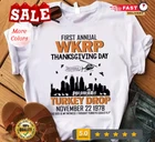 Wkrp Thanksgiving Drop Turkey Funny T-Shirt Day Gift Cincinnati Annual First If you need any SIZES, DESIGNS, COLORS, please inbox us NOTE: We insert Mug 11oz as an optional in this listing. When you choose 11oz mug, it may show the image of the T-shirt and make confusion. However, we'll send you 11oz mug with the design that matches with our design. If you want to buy a T-shirt, please view the size chart choose the correct size from size S to size 4XL. Our t-shirts are print on demand products. Please choose your t-shirt size before you make a payment because we cannot accept a return caused by incorrect t-shirt size choose Product Specification Product Specification Design & Printed in the USA. Double-needle neck, sleeves and hem; Roomy Unisex Fit Solid colors are 100% cotton; Heather colors are 50% cotton, 50% polyester (Sport Grey is 90% cotton, 10% polyester); Antique colors are 60% cotton, 40% polyester Decoration type: Digital Print Shipping, Return and Refund Policy On average, merchandise is produced and shipped from our facility 2-4 business days after purchase. Standard Shipping: 5-7 working days for USA. Please contact us if you have any dissatisfaction with the item you buy so that we give you the solution. It is easier for us to handle your issue if you send us the proof like an image. We can replace another within 30 days without fee if the item is defective, damaged, or an error is made on our end. About Item Location: This is printed on demand product, we'll fulfill it from one of our print facilities in Texas, Michigan, California ....In order to send this item soonest, we'll base on the real production situation to choose the best print facility where fulfill and send your order from. Please kindly understand if you see the item ship from another address that not match with default location. Thank you for understanding!