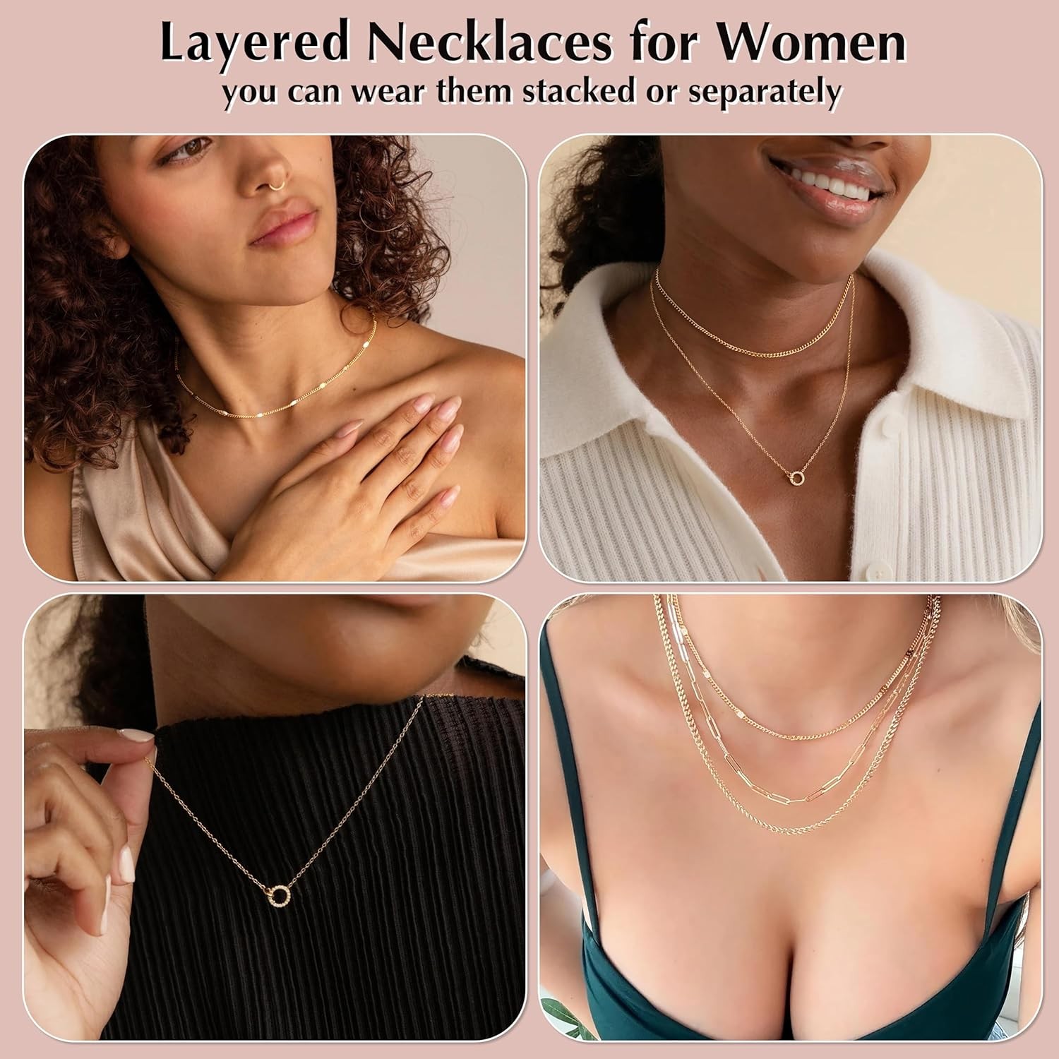 Free eBay listing template designed by dewiso.com WomenGifts Layered Gold Necklaces for Women, 14K Gold Sterling Silver Plated Dainty Pendant Necklace Set with Cubic Zirconia Circle, Chunky Stackable Cuban Chain Choker, Trendy Personalized Birthstone Jewelry Gift Non Tarnish FREE AND FAST SHIPPING! [Layered Chain Necklace Set]: This trendy 3-piece necklace set features a chic Cuban choker chain, a sleek dot chain, and a dainty long pendant with double cubic zirconia circles. Wear them stacked for a bold layered look or separately for simple everyday styling. [Adjustable & Stackable Fit]: Each chain includes a 2-inch extender with a secure lobster clasp:â Choker: 14" + 2", â¡ Dot Chain: 16.5" + 2", ⢠Pendant Chain: 18.5" + 2". Comfortably fits most necklines. Mix, match, and layer to suit any outfit or occasion. [14K Gold Plated, Waterproof & Tarnish-Free]: Crafted from high-quality brass and finished with 14K gold plating. This set is nickel-free, lead-free, hypoallergenic, waterproof, and designed to resist tarnishing â perfect for all-day wear with a luxury shine. [Fashion Gift for Any Occasion]: Elegant yet cute, this stackable necklace set makes a stylish gift for birthdays, Valentineâs Day, Motherâs Day, anniversaries, proms, and more. Comes in a beautiful gift box, ready to delight. [Designed by WomenGifts]: WomenGifts is a fresh jewelry brand dedicated to timeless fashion and quality at accessible prices. Each piece is thoughtfully designed to help you layer with confidence. Questions? Weâre here to help â always. Product We offer a 30-Day Return Policy on items which you are not completely satisfied with. You have the option for a full-refund or an exchange of the item. No returns are available on items shipped outside of the US . Shipping We offer Free Shipping to the US and ship within 2 business days of payment, usually sooner. We use UPS express shipping. That's why your products are usually delivered within 3 days . Contact We try our very best to make sure every customer is completely satisfied. If there's a problem , message us! We're happy to help. 24/7 live chat available.