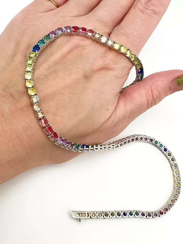 Elevate your jewelry collection with this exquisite Women Tennis Necklace featuring 15 ct round simulated multi gemstones set in 14k white gold plating. The stunning piece is perfect for any occasion, whether it's for an engagement, graduation, birthday, or just a night out. The necklace is adjustable and nickel-free, ensuring maximum comfort for all-day wear. Crafted with eye-clean clarity and excellent cut grade, the necklace boasts a prong setting style and a tennis link chain type. The gemstone clarity grade is eye clean, and the necklace is handmade with a personalized touch. This necklace is a must-have for those who love beauty, western, art, vacation, luck, love, fairytale & fantasy, angels, memorial, fashion & costumes.