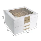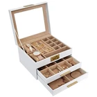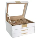 Jewelry box for women, Jewelry organizer box, Transparent lid, 3-Layer white jewelry storage box, 2 Drawers, Watch Display, Modern Style, Gift Product Details Size: 3-Layer Color: White Brand: Buliqi MPN: UJB003 UPC: Does not apply EAN: Does not apply Color: White Brand: Buliqi Material: Engineered Wood, Leather, Metal Style: Modern Special Feature: Hardware Included Recommended Uses For Product: 戒指 Product Dimensions: 6"D x 9.9"W x 9.89"H Target Audience: Women Shape: Square Occasion: Christmas Color: White Brand: Buliqi Material: Engineered Wood, Leather, Metal Style: Modern Special Feature: Hardware Included Recommended Uses For Product: 戒指 Product Dimensions: 6"D x 9.9"W x 9.89"H Target Audience: Women Shape: Square Occasion: Christmas Mounting Type: Table Top Finish Type: PU Coated Inner Material: Velvet Number of Drawers: 3 Item Weight: 3.6 Pounds Number of Compartments: 8 Jewelry Storage Type: Jewelry Box Number of Items: 1 Manufacturer: lanmer Part Number: UJB003 Item Weight: 3.64 pounds Country of Origin: China Item model number: UJB003 Size: 3-Layer Finish: PU Coated Special Features: Hardware Included Included Components: Jewelry box Batteries Included?: No Batteries Required?: No Date First Available: September 18, 2023 Super storage function---3 Layers: this jewelry box contains 2 watch pillows, 8 rows for rings, 8 compartments for earrings, and 2 drawers with separate compartments for bracelets, barrettes, necklaces, and watches. Clear transparent Lid: The see-through lid of this jewelry organizer allows you to see and find your favorite jewels at a glance while protecting them from dust. Stylish and beautiful appearance: Elegant white PU and shiny metal handles, beige soft velvet lining, all these elements combined make this jewelry case stylish and elegant. Superior quality materials: Durable leather fabric, sturdy MDF panel structure, soft velvet lining protect your jewel from dust and scratches Perfect Gift Idea: Its a good choice as Valentine's Day, Mother's Day, Christmas, or a birthday gift your loved ones.