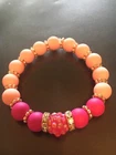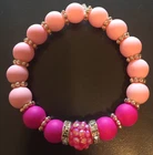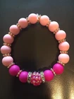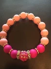 Womens 7” Hot Pink/light Pink Rubber Coated 10mm Glass Beads Bracelet Rhinestone. Shipped with USPS First Class Package. Message me for different size