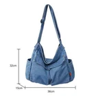 Specification: Material: denim Size: 360*320*150mm Suitable for: women Number of shoulder straps: one Usage: Shoulder, Crossbody Closing method: zipper Pattern: solid color Occasions: daily, leisure, shopping, travel Shoulder strap adjustable. Note: Due to the different monitor and light effect, the actual color of the item might be slightly different from the color showed on the pictures. Thank you! Please allow 1-2cm measuring deviation due to manual measurement. 1 x Shoulder Bag