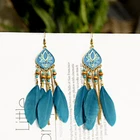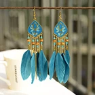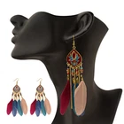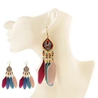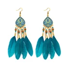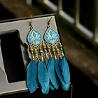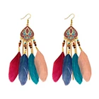 Women’s Bohemian Rainbow Flower Feather Tassel Dangle Earrings Ethnic Boho Style Gift for Her