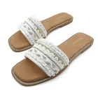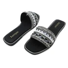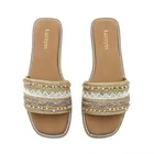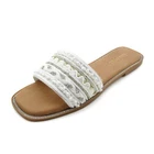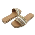 Women Beaded Summer Slide Sandals with Crystal H-Strap Sequin Decor