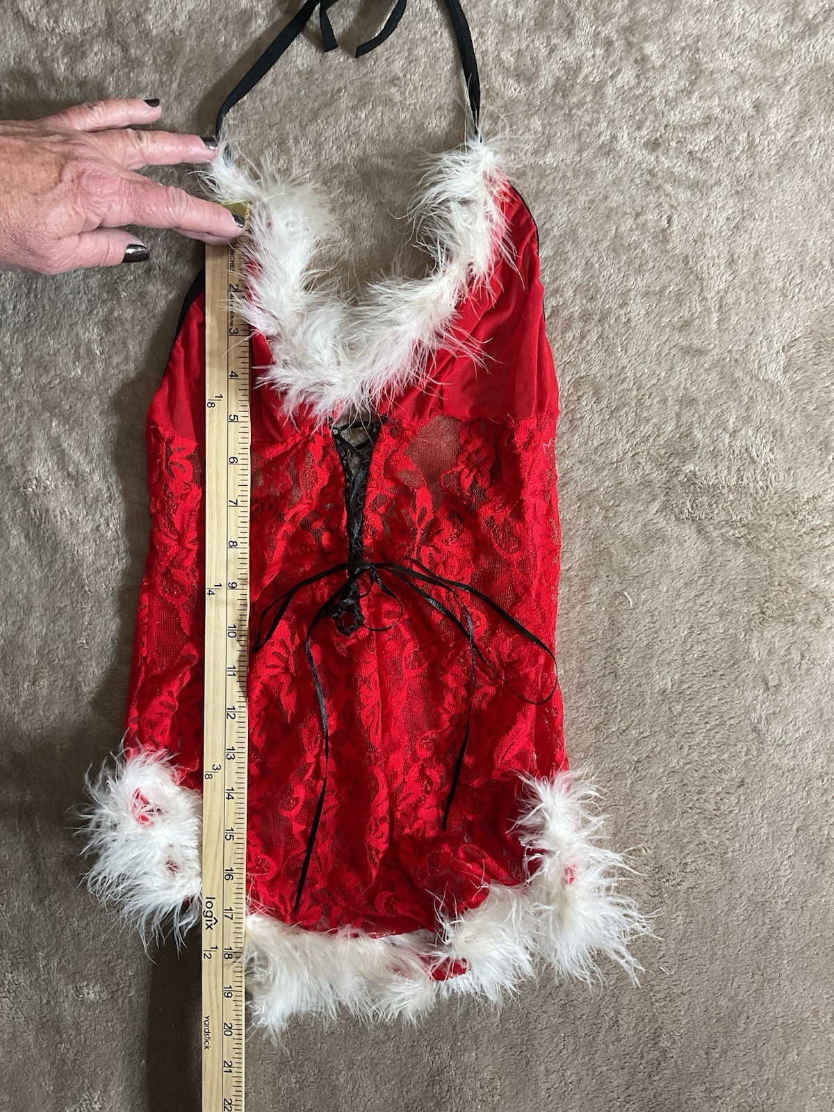 The product is a festive and whimsical Christmas-themed lingerie set designed specifically for women, featuring a Santa Claus teddy design. This sexy and playful lingerie is perfect for holiday celebrations or special nights, adding an touch of fun and playful charm to any wardrobe. This intimate set is sure to make any woman feel confident and sensual during the holiday season. B1
