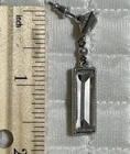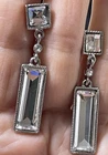 Women's Fashion Earrings Classic Glam Evening Fasceted Long Thin Rectangle that Dangle Drop from Square Bevel Set Diamonds Textured Back Miniature Etched Floral Pierced, Push Closure Pre owned, Nice Condition Lots of sparkle
