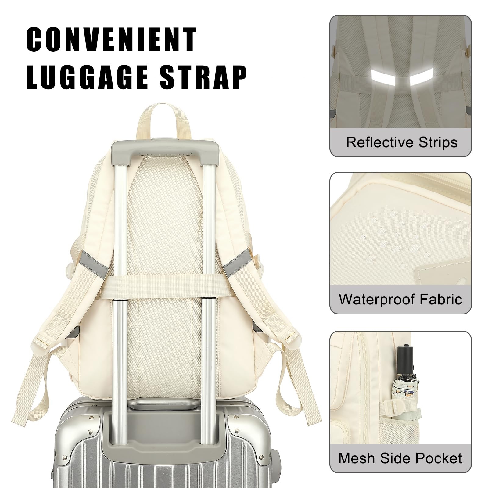 For Any Ages & Occasion: The school bag is stylish enough for casual and student use, while the design provides the multi functionality. Perfect for young teens, girls, ladies. The multipurpose backpack meets most of your needs, easy to match your cloths, suitable for short trip, work, shopping, university, school, office, daily use, etc. (Age: 8+ years old.) Designed with Love: the backpack comes with a plush pom-pom keychain and personalized badge accessories, stylish and eye-catching; A back hidden anti-theft zippered pocket sits up against the wearer’s body for valuables; luggage strap design can be convenient for you to fasten the backpack to the luggage trolley, so that you can go out more conveniently. Material: Crafted from waterproof, ultra-lightweight, high density premium polyester fabric, this girls backpack with the exquisite workmanship of sturdy stitching and smooth zippers ensure to use with a long-term performance. Size: 12.2"x6.3"x17.6"(L*W*H), Main Compartment with laptop sleeve which it is spacious enough to fit 15.6inch laptop, iPad, A4 binders, text books, lunch box, etc; The second pocket fit the school basic essential, note book, pencil case; 3 small pockets on the front panel can hold the daily stuffs and quick access them; Elastic side pockets are for water bottle and umbrella. Comfortable & Breathable: This girls school backpack is ergonomically designed with S-shaped shoulder straps and back panel with breathable thickened sponge padding, which makes the girls' back comfortable, relaxes the shoulders and reduces the pressure; reflective strips are designed to remind the passing cars to pay attention to avoid.