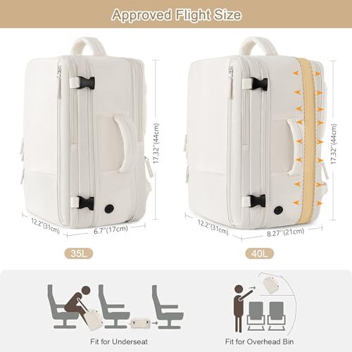 Return Policy Fast Delivery Trusted seller Travel Backpack for Women, Expandable 40L Carry on Flight Approved Backpack, 17 Inch Laptop Waterproof Travel Bag for College, Travel, Work, Beige Product Description EXPANDABLE & LARGE CAPACITY: large travel backpack features with expandable layer which offers you more packing capacity(Size: 17.32*12.2*6.7+1.57inch). Unzipping to get 40L storage and easily fits packing cubes, make-up bag, outfits, camera bag and gear, which is ideal for men, women, weekend traveler, or occasional vacationer. With personal item size, this travel bag allows you to pass airport security like a breeze LOTS OF POCKETS & 17.3 INCH LAPTOP AVAILABLE: This carry on backpack is equipped with a padded laptop compartment which will protect your 17.3 inch laptop well. This travel backpack has a large storage space with many hidden pockets. It also comes with two toiletry bags to carry your hair and bath products WITH LUGGAGE BELT & ANTI-THEFT POCKET: Featuring a luggage belt design, travel backpack for women allows business traveler to fixes it on the suitcase, providing you an easier carrying. A hidden anti-theft pocket on the lower back will protect your valuable items well such as wallet, passport, ID card from thieves when traveling or lining up LONG USING LIFE: travel backpack carry on flight approved is made of water-resistant and anti-scratch polyester, with good air permeability and heat dissipation, it willl provide protection on drizzle days . With sturdy zippers and decent stitching, this travelling backpack won't show any defects when on the go, ensuring you an unforgettable weekend getaway CONVERTIBLE DESIGN: personal item backpack is designed with hideaway padded shoulder straps which can be easily stored away in zippered back panel, transforming this vacation backpack from carry-on duffel to briefcase style and provide you a more flexible carrying experience by using the side handle PERFECT PRESENT: travel backpack – The best gift choices for Birthday, Valentine’s Day, Thanksgiving Day, Christmas, New Year for you wife, girlfriend, mother, daughter, friends, etc. Best gifts for people travel, go to commute, business, hiking, camping Shipping Returns Payment Shipping Shipping is FREE to all addresses other than APO/PO boxes in the lower 48 states. All our stock ships from US-based warehouses. Shipped via USPS or UPS (depending on location and package weight) Unless stated otherwise, all orders will ship within 24-72 hours of your payment being processed. Check our feedback to see the great reviews of FAST shipping we offer. Returns Seller does not accept returns Payment We currently accept payment via eBay managed payments only. Once payment is cleared, we will dispatch your shipment within 1-3 business days. Please refer to the "Shipping" tab for more information regarding shipping speed to your destination.