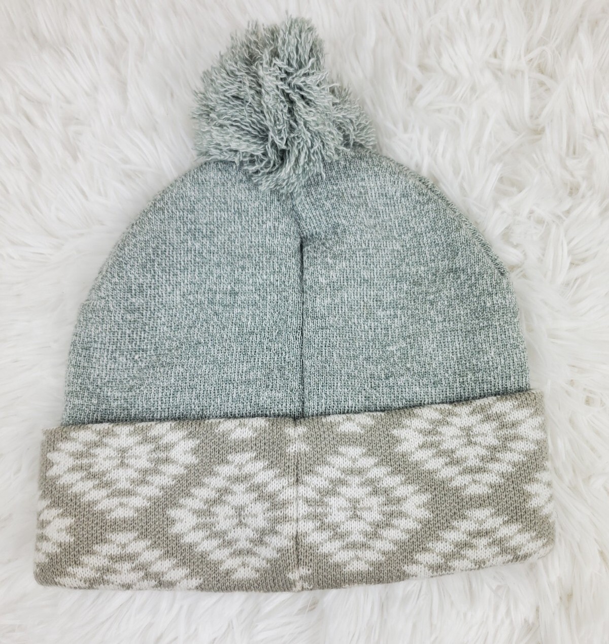 Beanie Hat Womens One Size Fits All Gray Pom | Aztec Brim.